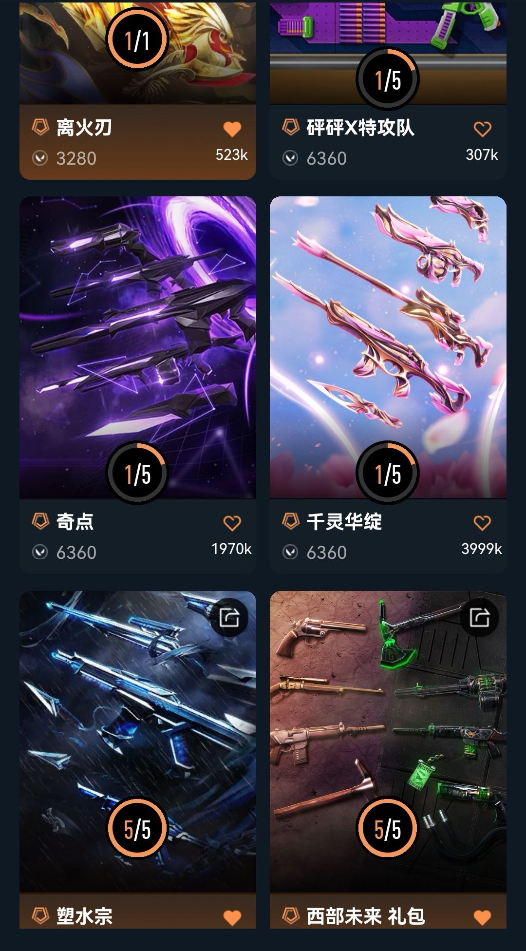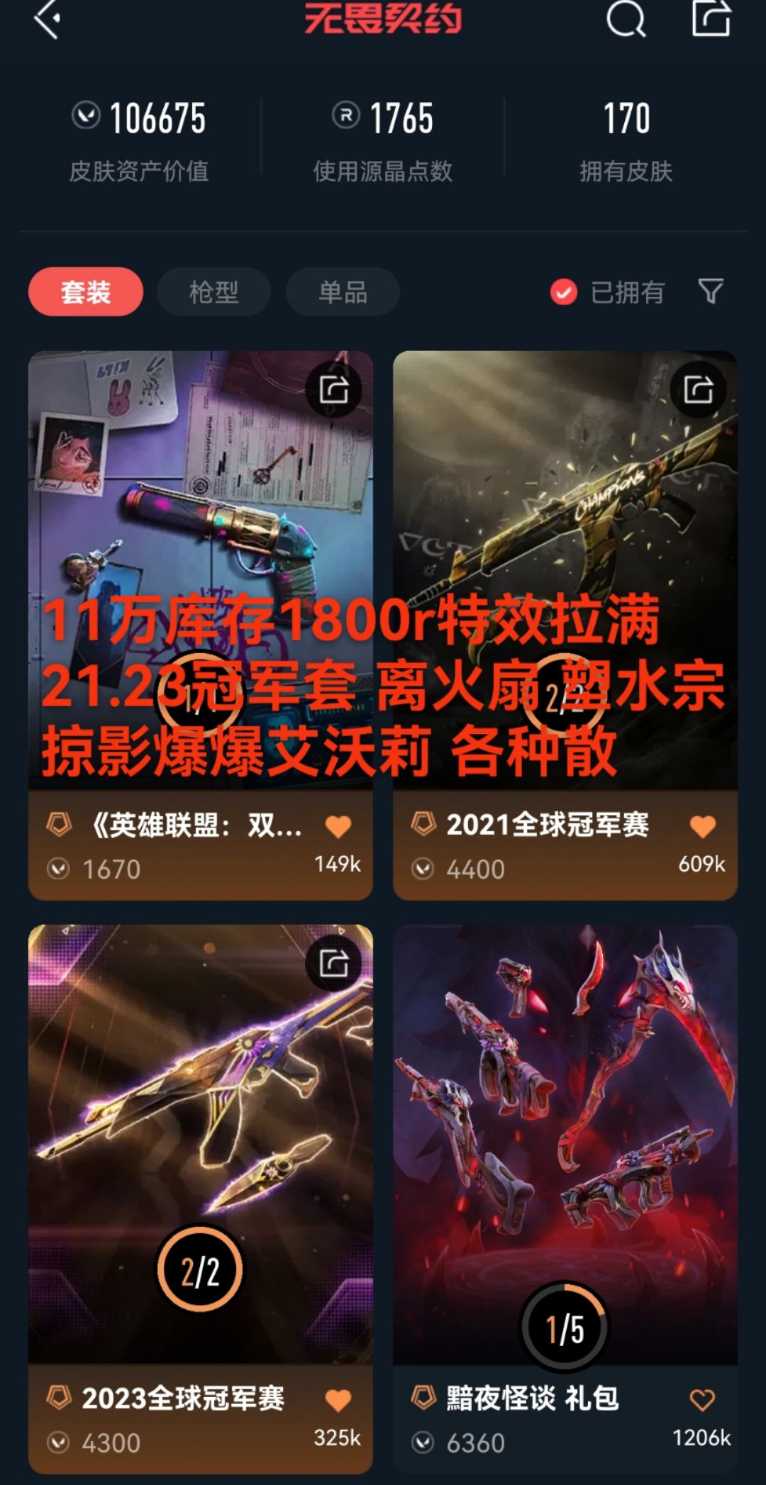 可排❤️11w库存1800R✅21冠军套23⚡️离火刃vct爪刀⚡️塑水莲花掠影西部套艾沃莉奇点盖亚