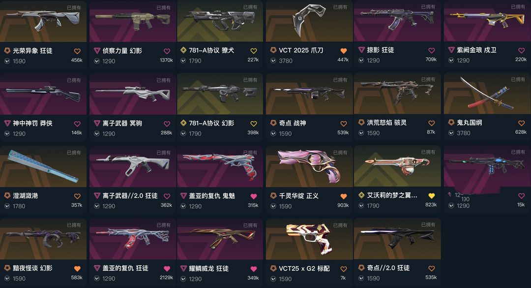 可排❤️光荣异象掠夺盖亚离子2.0威龙奇点★vct爪刀鱼扇太刀★黯夜怪谈★侦察力量★781★猫猫奥丁