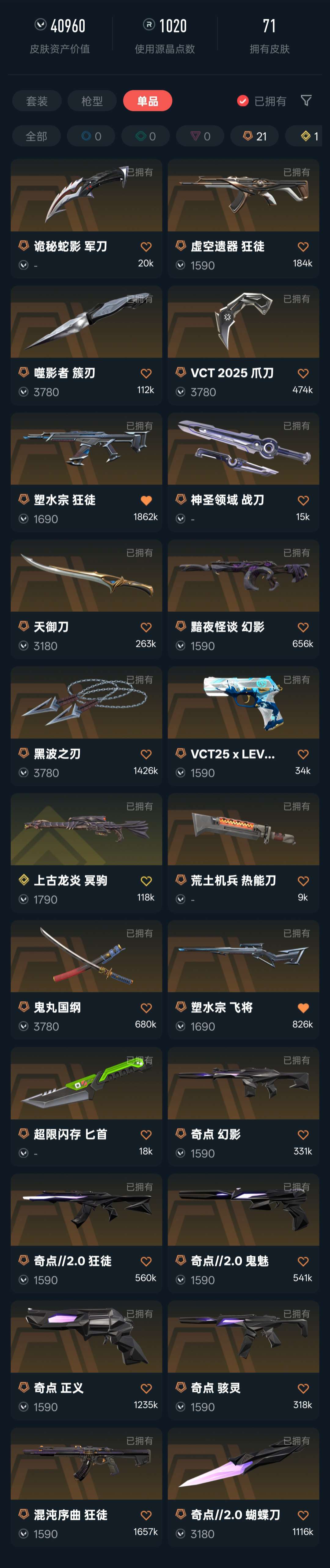 可排⚡多刀皮⚡vct爪刀vct标配⚡回火奇点套⚡混沌塑水宗虚空狂徒⚡黑波之刃⚡塑水宗飞将