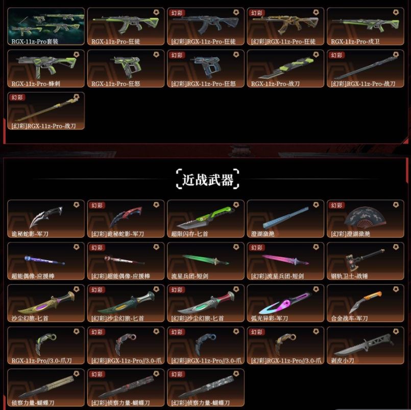 装备描述:可排位✨4w库存1500R点✨RGX-11z-Pro套装(RGX-11z-Pro-狂徒,RGX-11z-Pro-戍卫,RGX-11z-Pro-蜂刺,RGX-11z-Pro-狂怒,RGX-11z-Pro-战刀)✨澄湖潋滟,超能偶像-应援棒,流星兵团-短剑,钢轨卫士-战锤,沙尘幻旅-匕首,弧光异彩-军刀,合金战车-军刀,RGX-11z-Pro//3.0-爪刀,剥皮小刀,侦察力量-蝴蝶刀✨塑水宗-狂徒,全息波普-獠犬,机动狂飙-狂徒,归零者-狂徒,离子武器//2.0-狂徒,堕天遗武-狂徒,盖世英雄-狂徒,紫阙金琅-狂徒,盖亚的复仇-狂徒,侦察力量-幻影,般若假面-幻影✨奇点-正义✨
