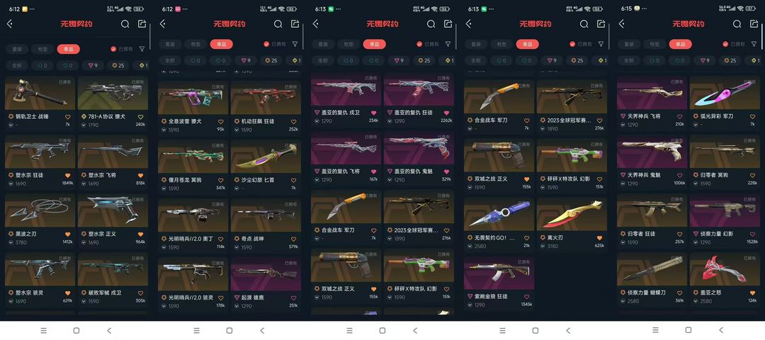 离火刃+23冠军+盖亚套+塑水套+双城正义+偃龙大狙+侦察幻影、蝴蝶刀等。炸鱼控制kda和爆头!