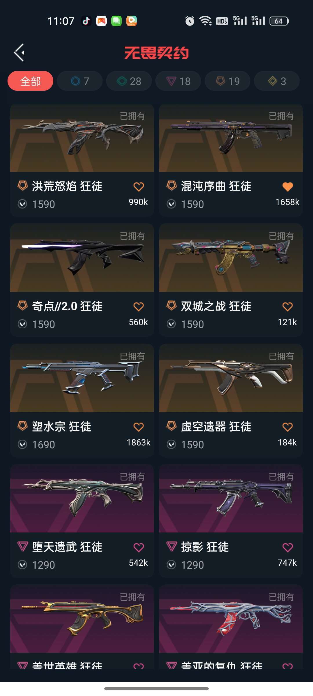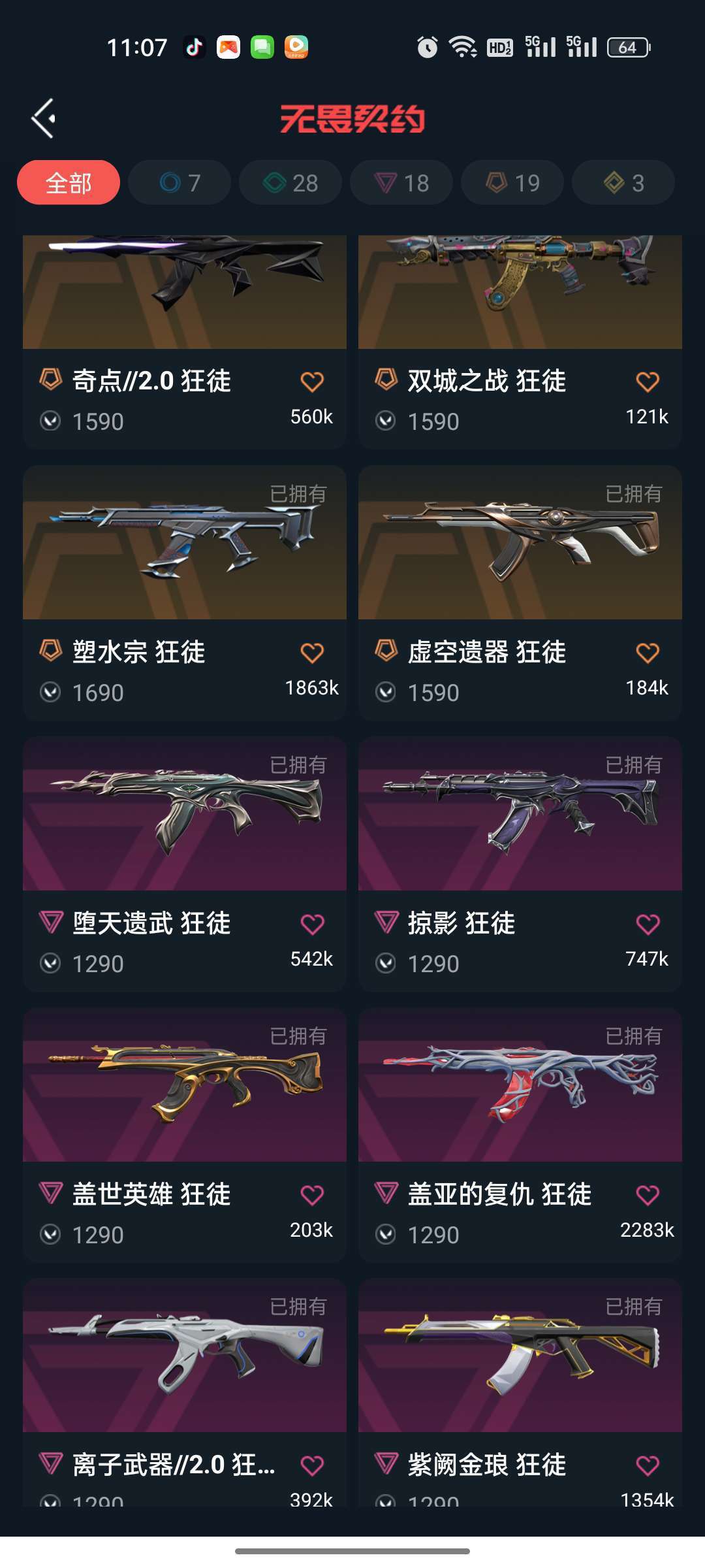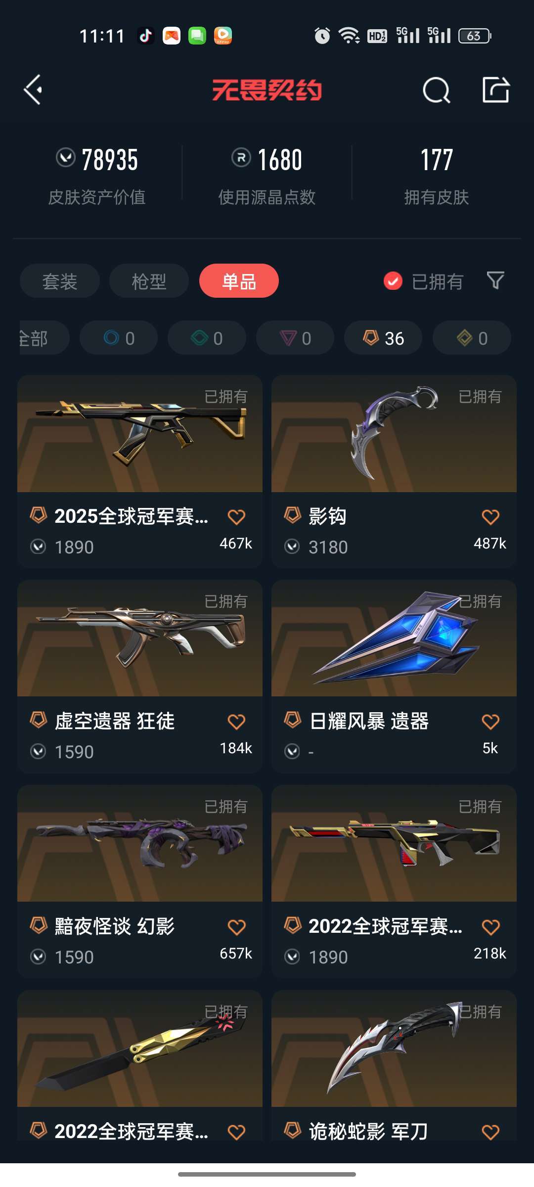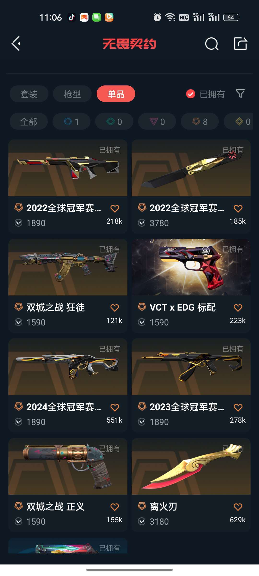 22冠军套,23,24冠军枪皮,离火刃,爆爆左轮+狂徒17把狂徒皮,15把幻象皮,西部正义,偃月大狙