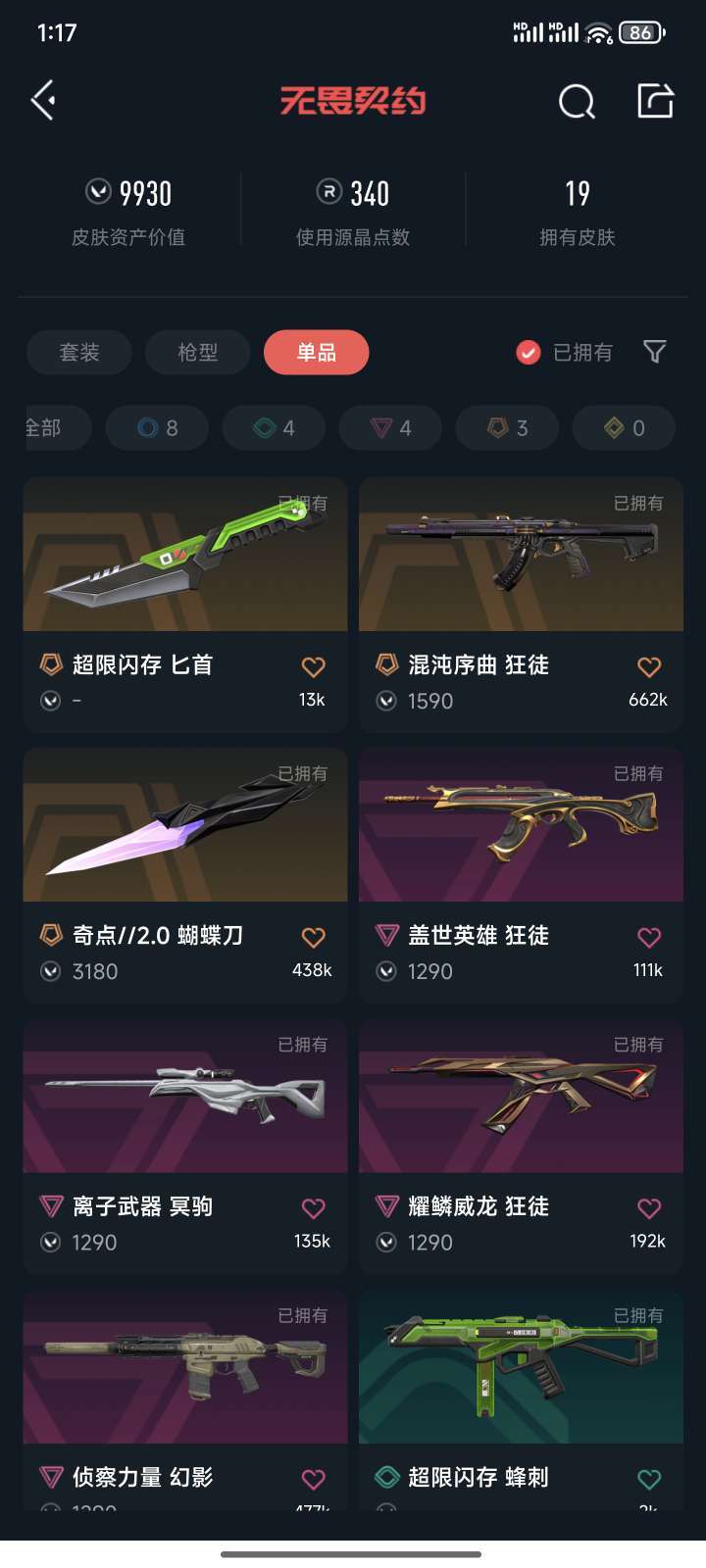 武器皮肤数量:20