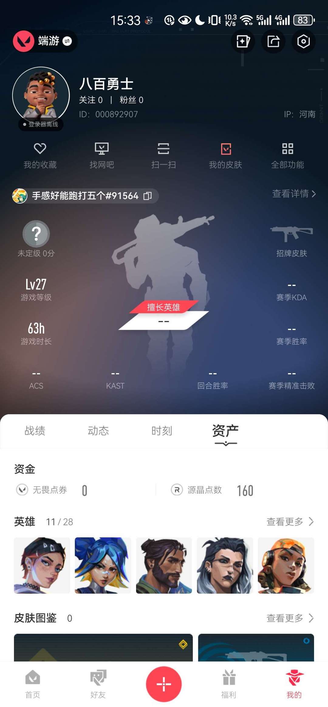【当前段位:未定级】可排位❤️炸鱼❤️开挂拉黑投诉❤️低段位❤️无畏契约