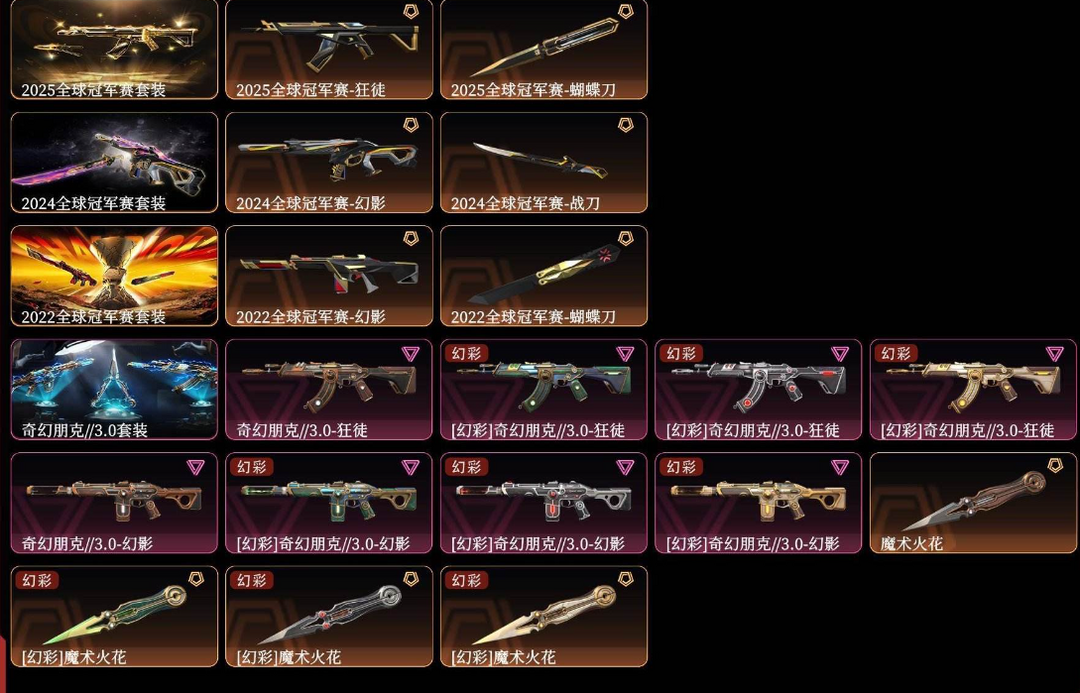 可排位15W大库存❤25冠军套❤24冠军套❤22冠军套❤朋克套❤混沌流脓显卡光荣紫金狂徒黑波鬼丸