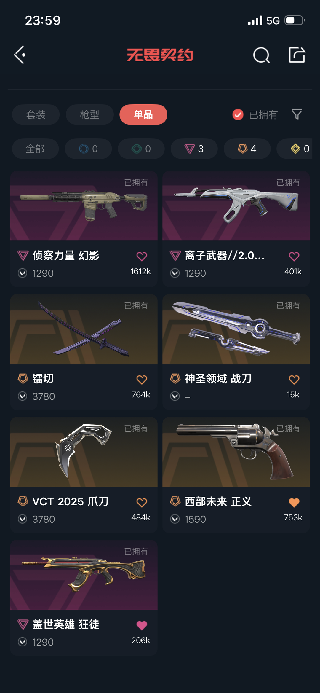 可排位⭐VCT2025爪刀⭐镭切太刀⭐侦查力量幻影⭐离子武器狂徒⭐盖世英雄狂徒⭐西部未来正义⭐