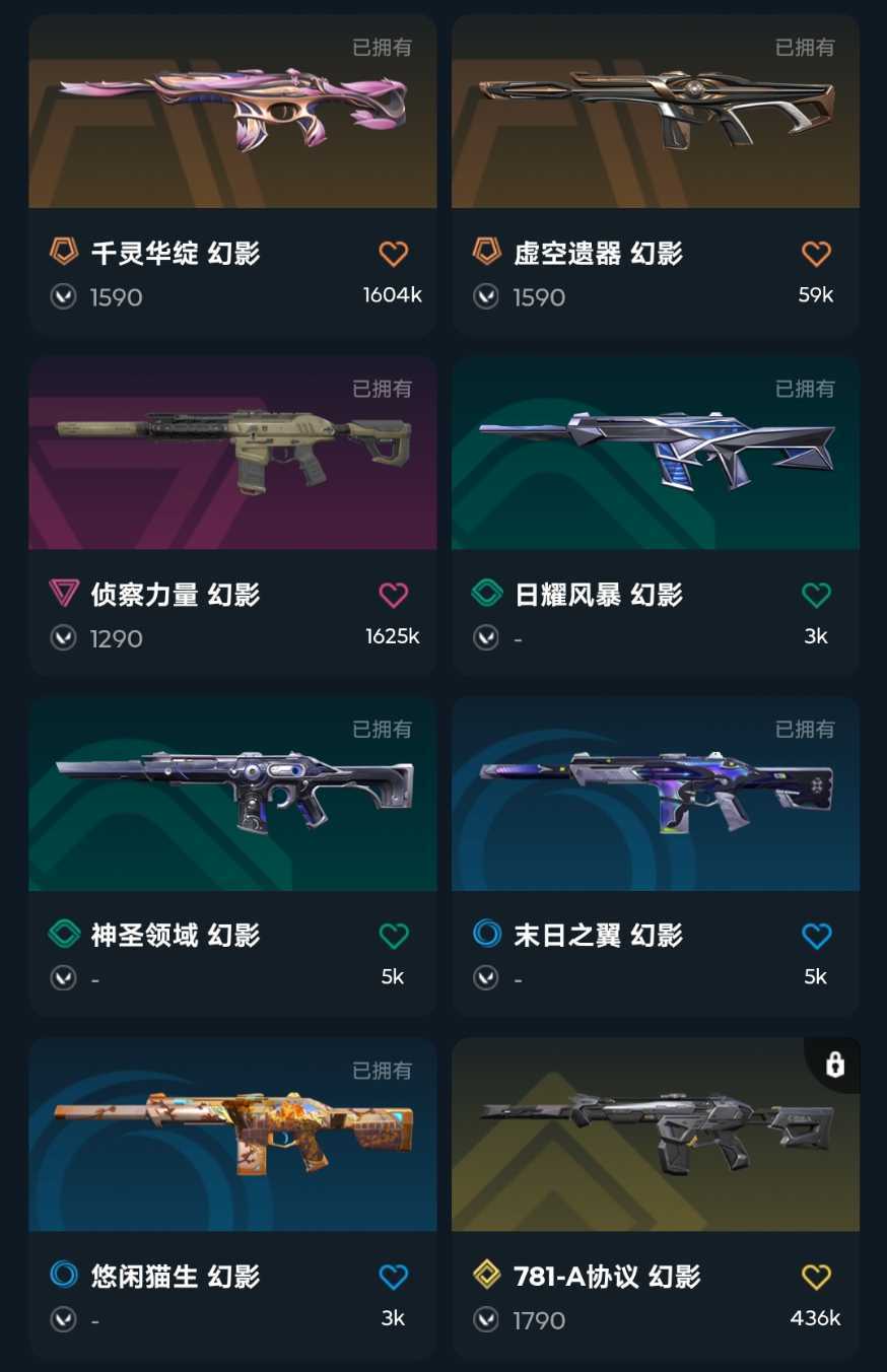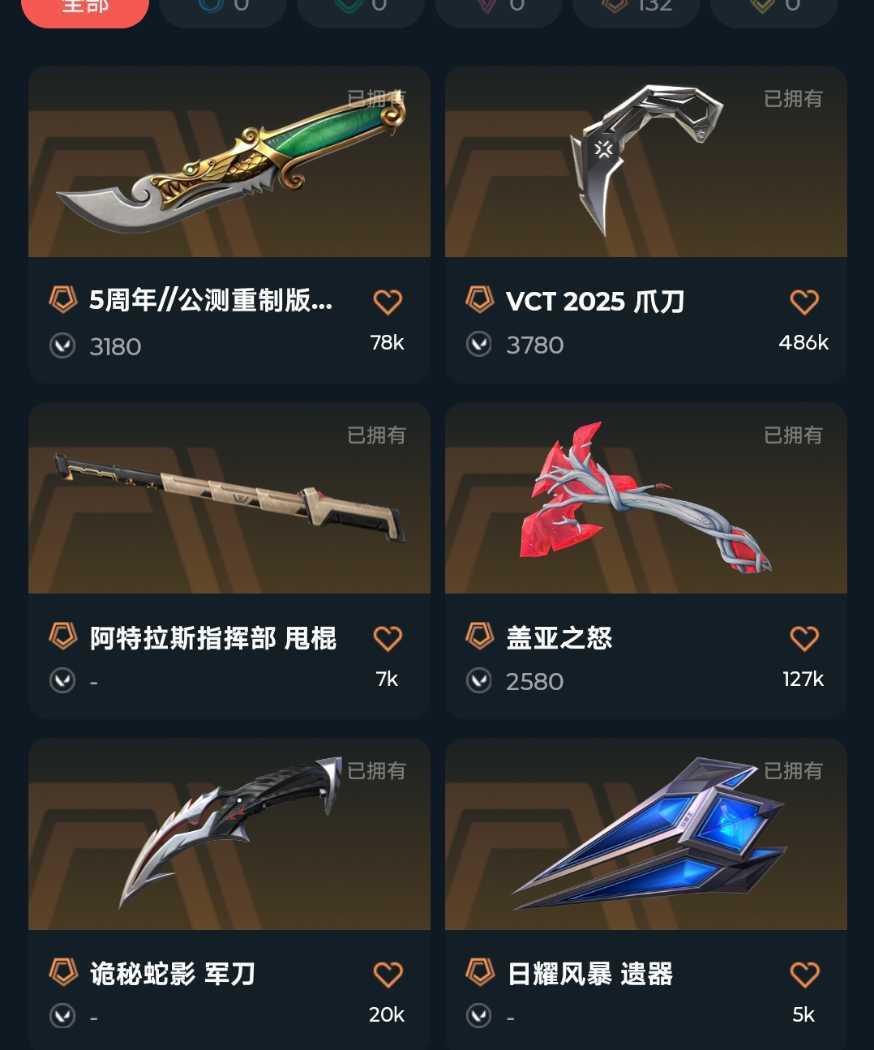 ⚡可排⚡VCT爪刀⚡苍龙之刃⚡狂徒⚡盖亚之怒⚡混沌序曲光荣异象猫猫AK洪荒怒焰⚡幻影千灵华绽侦查力量