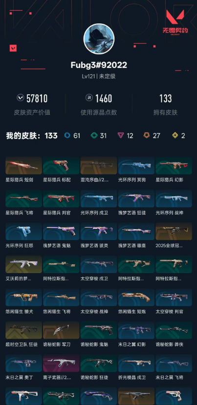 武器皮肤数量 133 英雄数量 17
