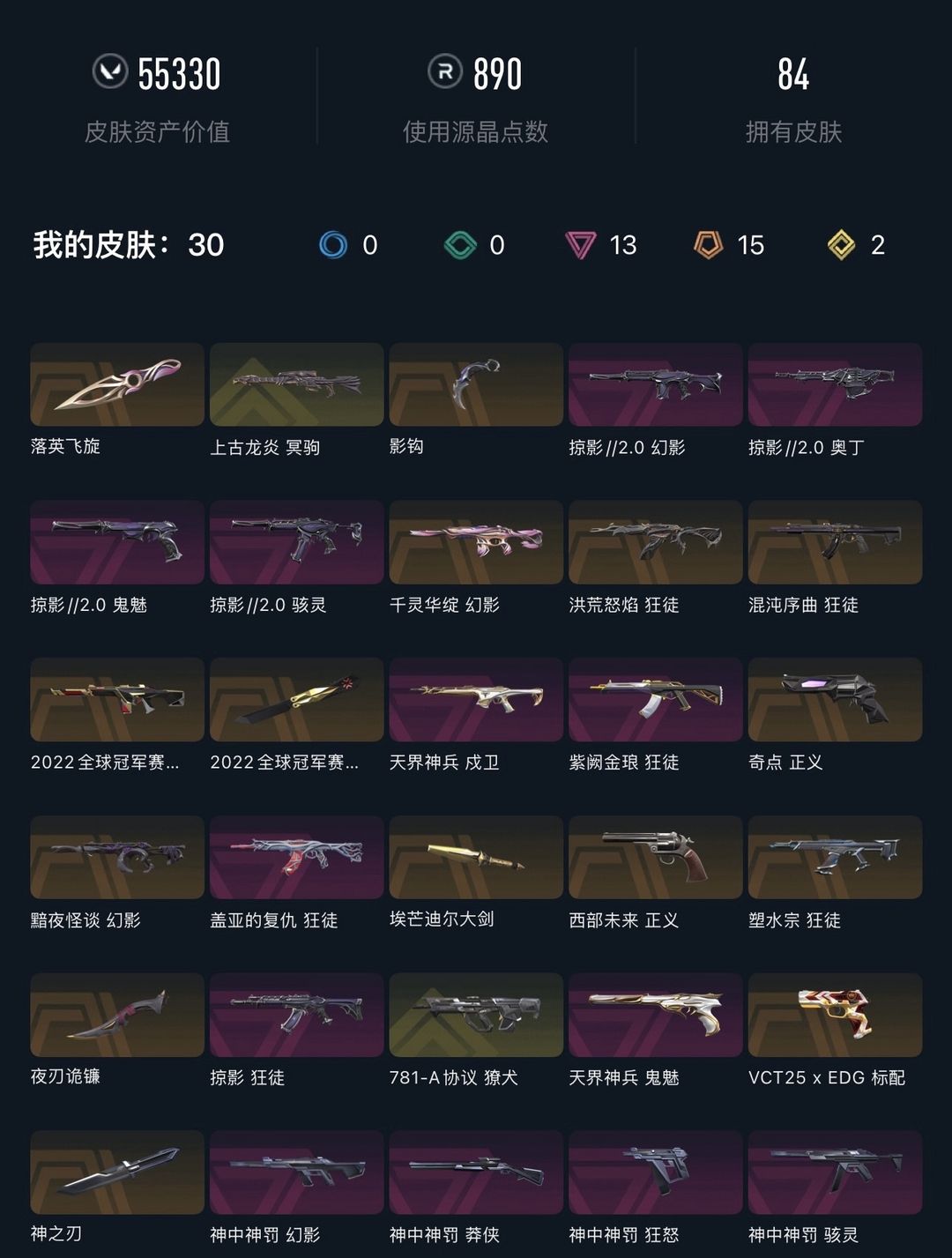 武器皮肤数量:86
