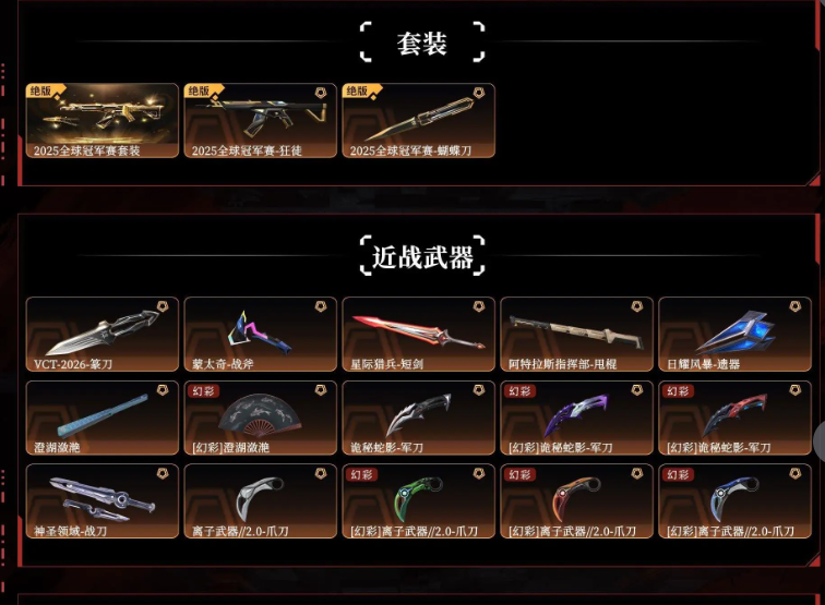 2025冠军套✨混沌序曲塑水宗盖亚的复仇紫金威龙噬影海洋掠影侦察vct252026篆刀蒙太奇军刀爪刀