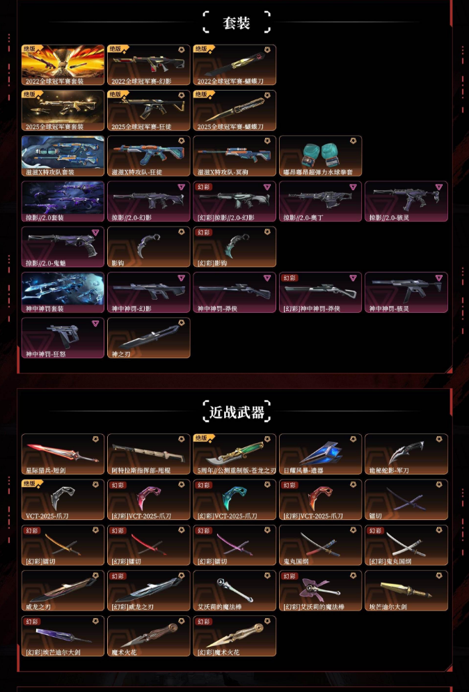 2025冠军2022冠军掠影2.0滋滋特攻队神中神罚苍龙之刃vct爪刀威龙之刃魔术火花多弥尔复仇狂徒