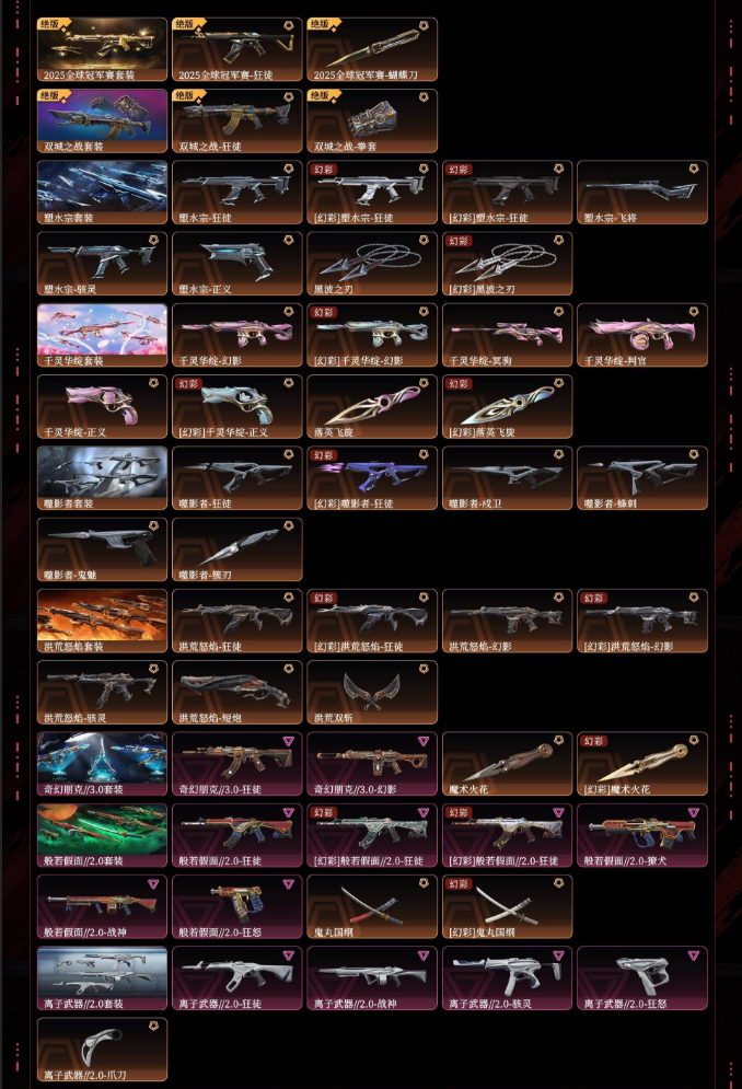 2025冠军朋克3.0双城之战塑水宗千灵华绽噬影者洪荒怒焰般若假面2.0离子武器2.0颗秒军刀