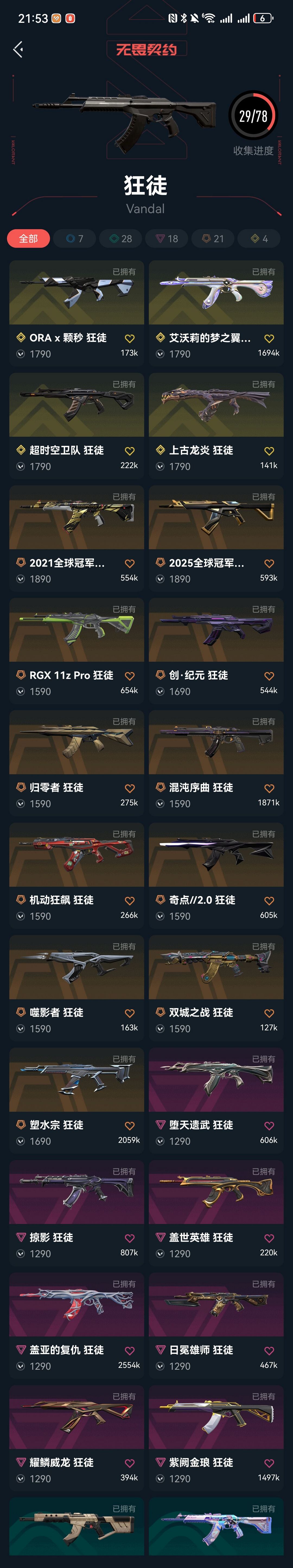 装备描述:21冠军24/25冠军,22把特效狂徒,颗秒套,侦察幻影,22把近战
