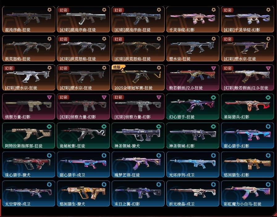 装备描述:可排位✨5W库存1500r✨25冠军/末日泡泡/奇点2.0套装✨紫金爪/显卡爪/夜刃✨混沌/塑水/流脓/般若狂徒✨侦察幻影✨莲花莽侠/掠影大狙✨