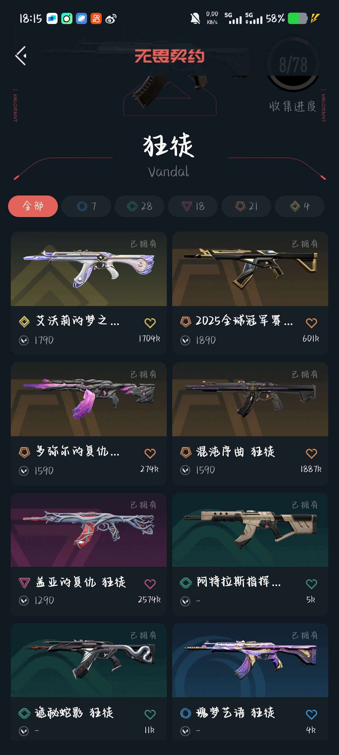 装备描述:AK:二五套多米尔复仇盖亚混沌猫猫。M4古神侦查。刀:显卡爪刀25蝴蝶刀黑波。堕天大狙猫猫骇灵VCT标配。请游戏局内保持文明,防止禁言影响他人游戏,祝您玩得愉快!喜欢本账号请点 ☆收藏☆ 方便下次租用,谢谢光临惠顾!