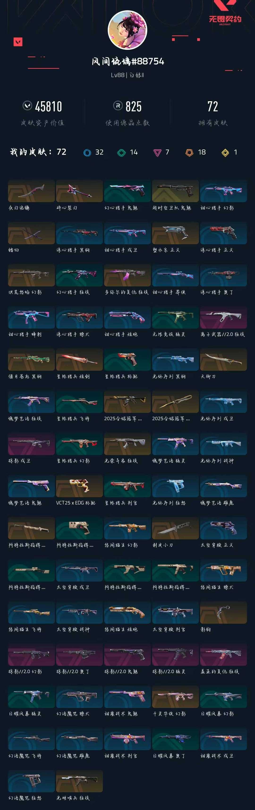 装备描述:25冠军镭切夜刃诡镰光荣异象塑水宗离子武器洪荒怒焰掠影超时空卫队剥皮小刀掠影全套盖亚的复仇千灵华绽光明哨兵