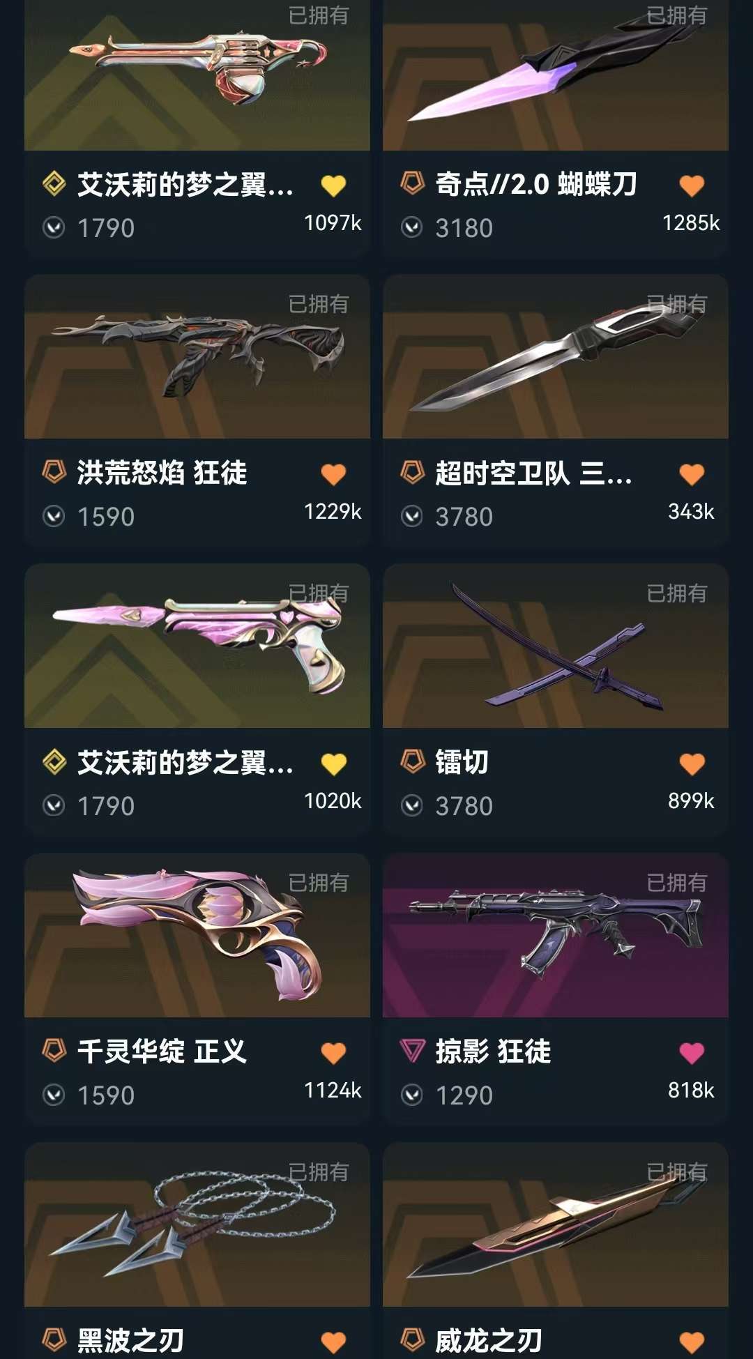 可排1000R❤️7万库存❤️莲花2.0套❤️颗秒套❤️三棱刺❤️黑波❤️威龙刃❤️流脓AK掠影AK