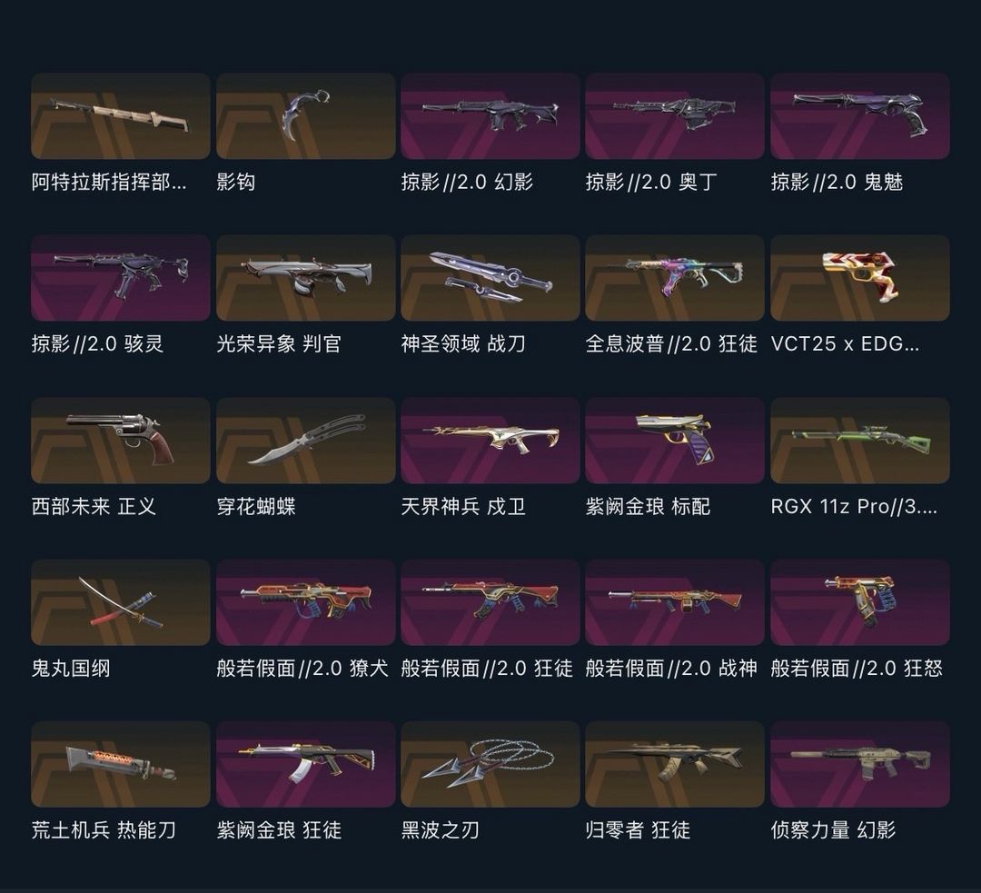 禁排★掠夺爪刀影钩★掠夺2.0套装★穿花蝴蝶黑波之刃太刀★西部未来正义★全息归零者紫金狂徒★侦查幻影