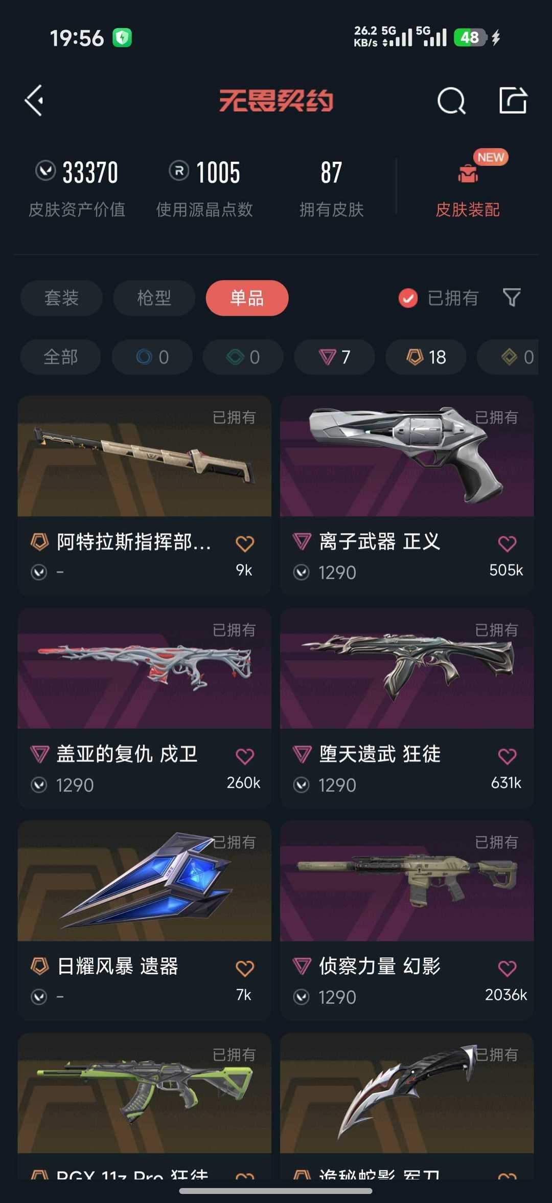 武器皮肤数量:87