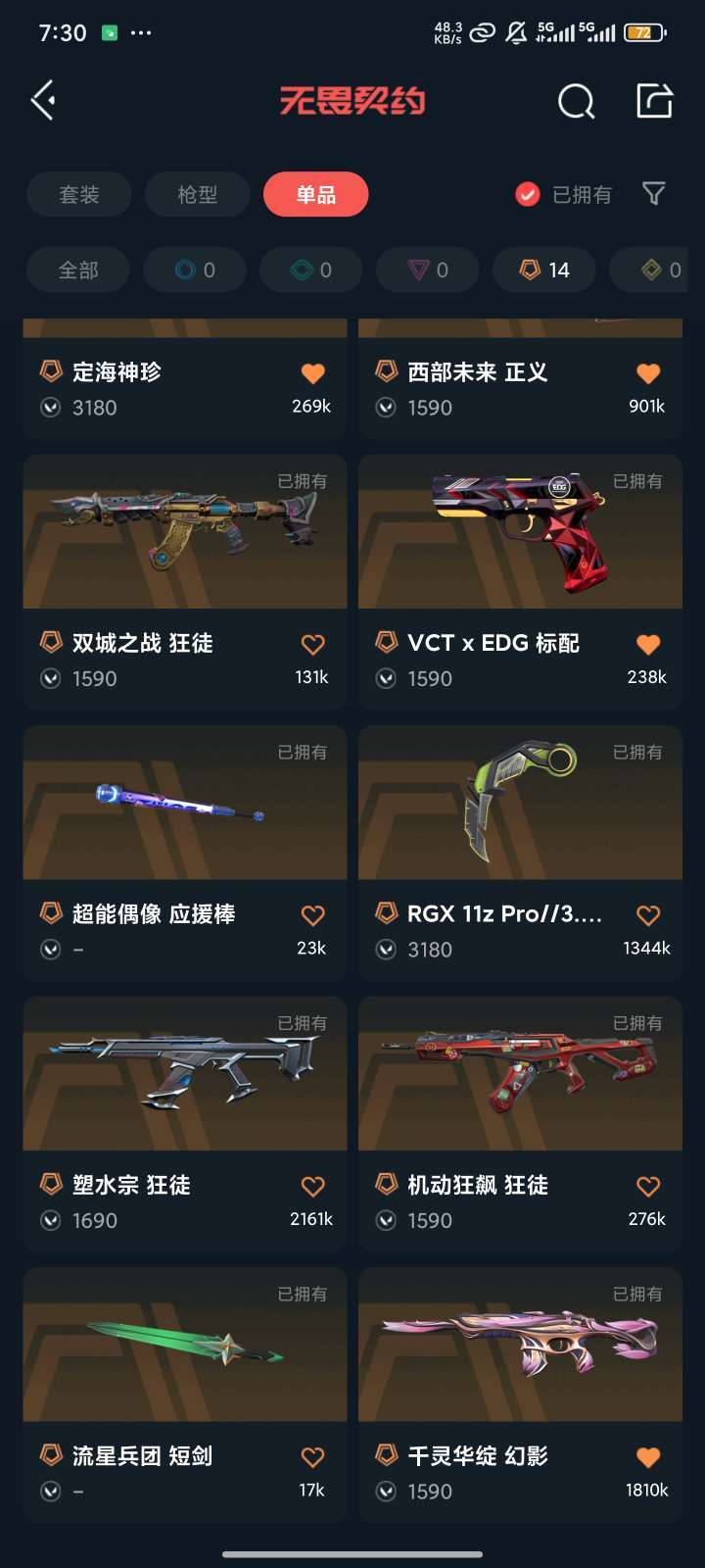 传奇数量:14