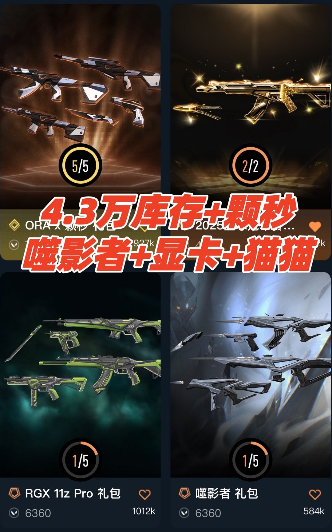 禁排✅4.3万⭐猫猫颗秒显卡噬影者威龙25冠军套⭐紫金爪蝴蝶刀太刀⭐掠影vct标配创纪元莽侠哨兵奥