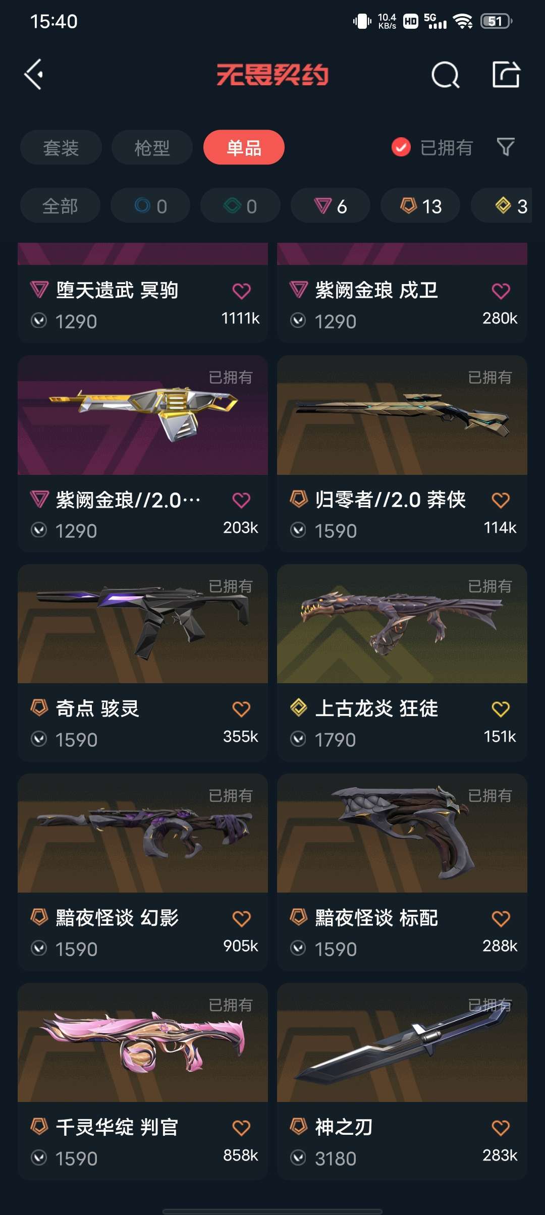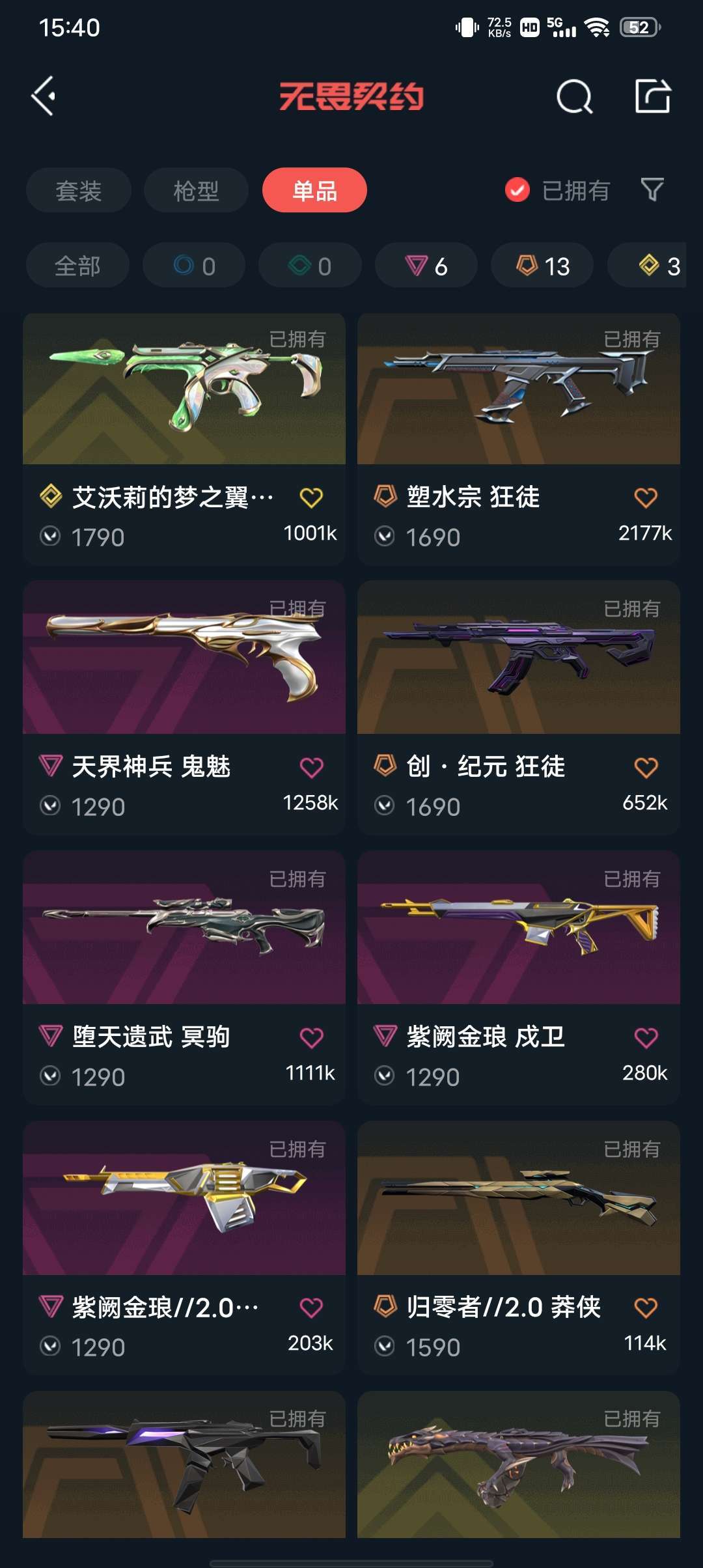 装备描述:狂徒:上古龙炎 塑水宗 创·纪元 幻影:侦查 黯夜怪谈 奥丁:紫金 猫猫 骇灵:奇点 猫猫 刀:神之刃 樱花标 机动狂飙 手枪:混沌正义 天界鬼魅 黯夜怪谈标配 归零者莽侠 归零者獠犬 离子战神 紫金戍卫 堕天遗武大狙 千灵华绽判官