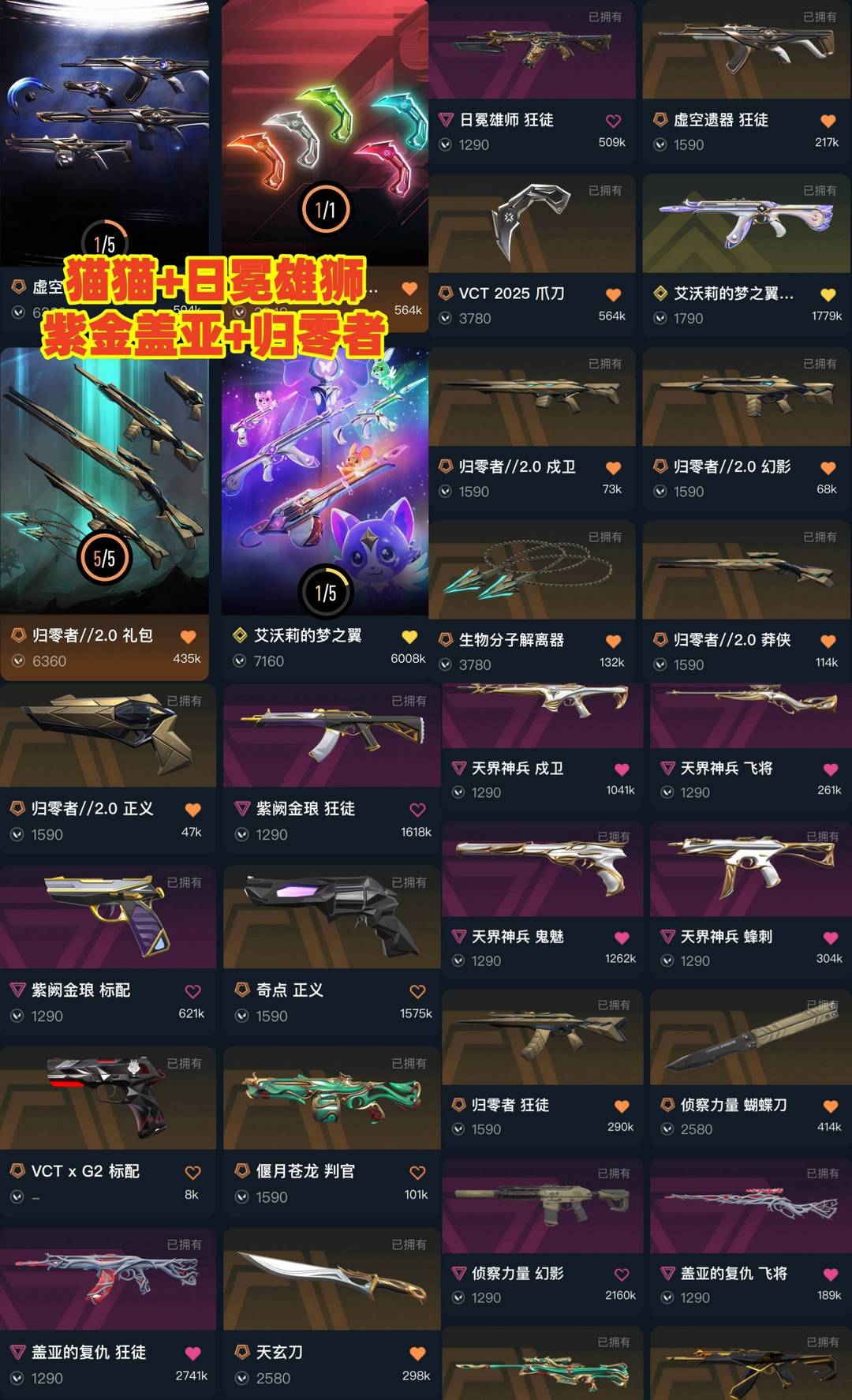 可排✅4.4万⭐猫猫梦之翼虚无日冕雄狮紫金盖亚归零者23冠军⭐蝴蝶刀天玄刀vct爪⭐侦察奇点天界苍