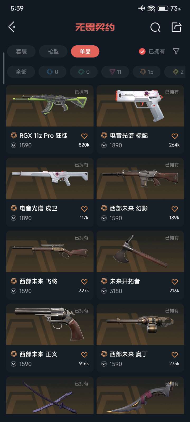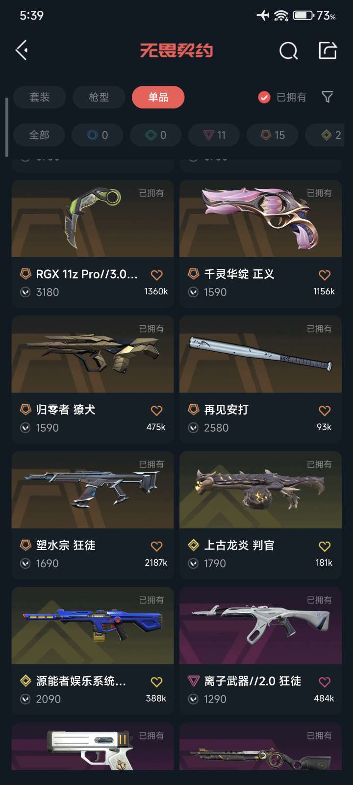 - 品质齐全:拥有 11 把紫皮、15 把橙皮、2 把黄皮,实战手感与颜值兼备,满足不同对局需求。
