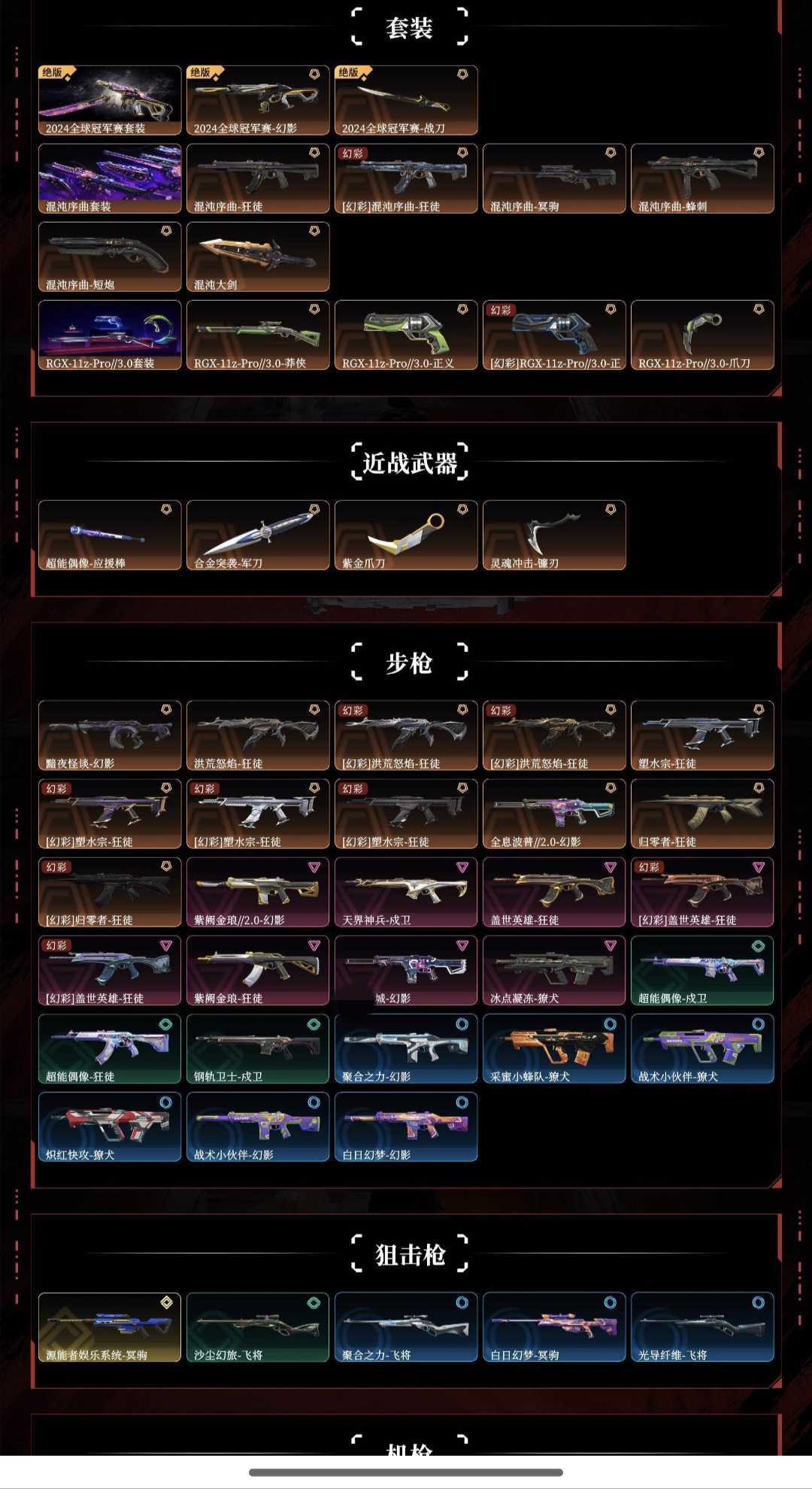 装备描述:(终极3传奇15卓越9),套装3(传奇3),2024全球冠军赛套装,混沌序曲套装,RGX-11z-Pro//3.0套装