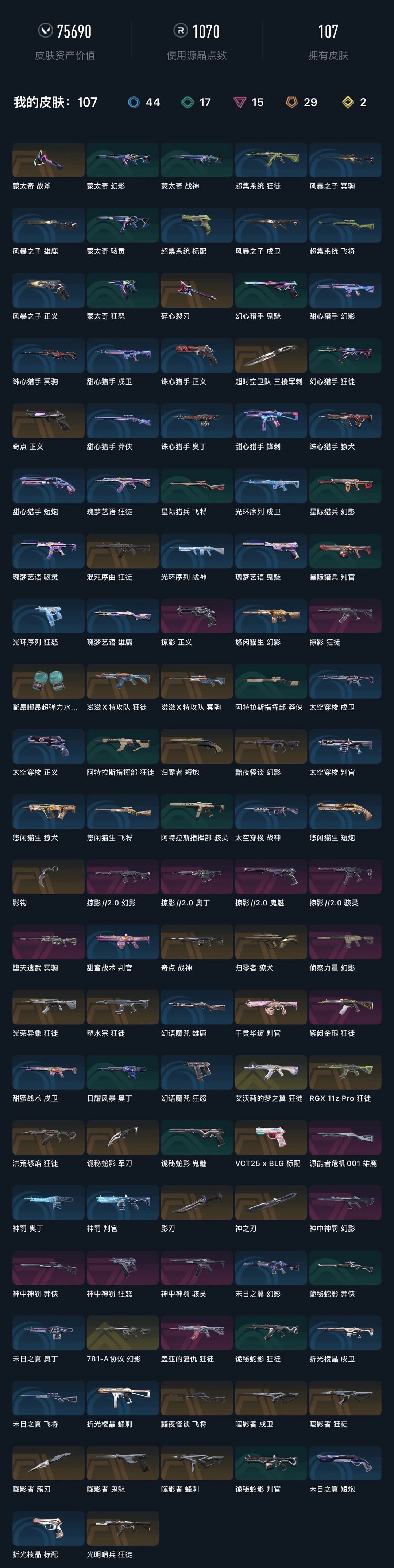 武器皮肤数量:107
