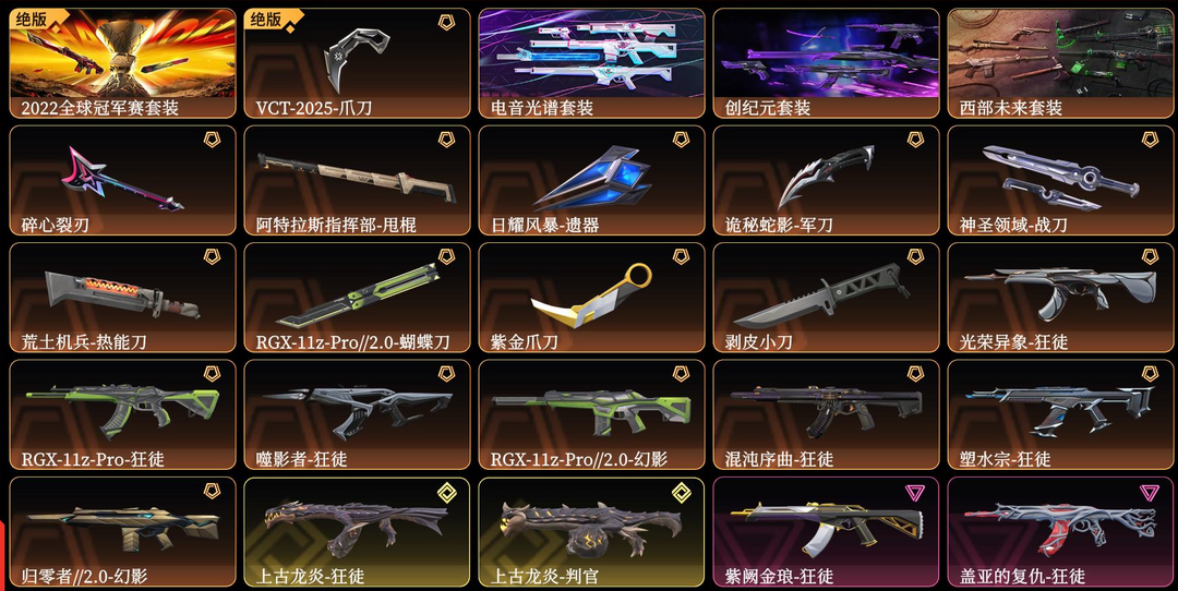 可排位✅顶级10W库存✅22冠军套⭐显卡AK⭐显卡套⭐创纪元套⭐VCT爪刀⭐西部未来套⭐电音光谱套⭐