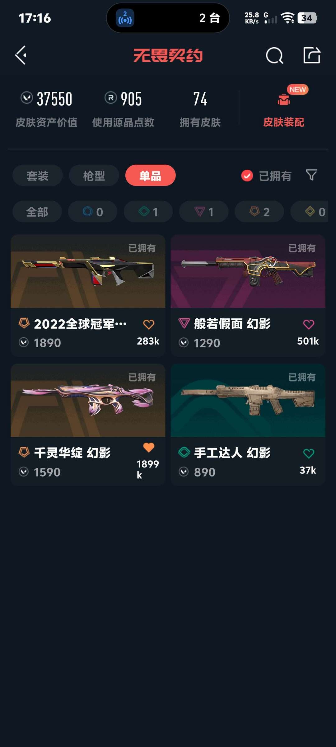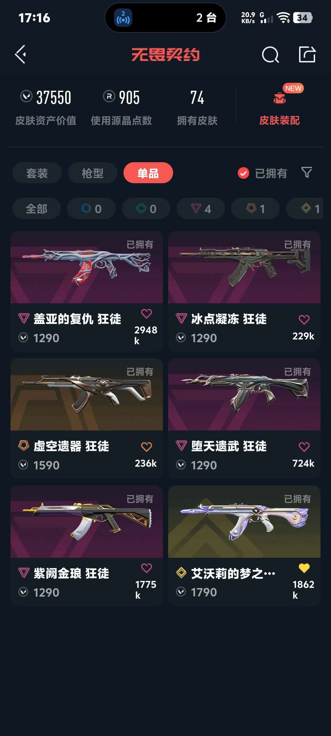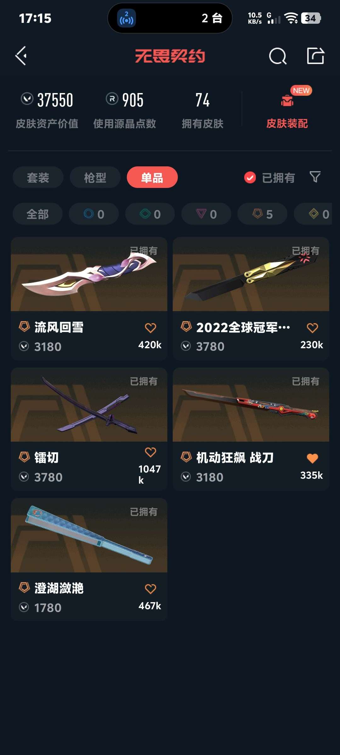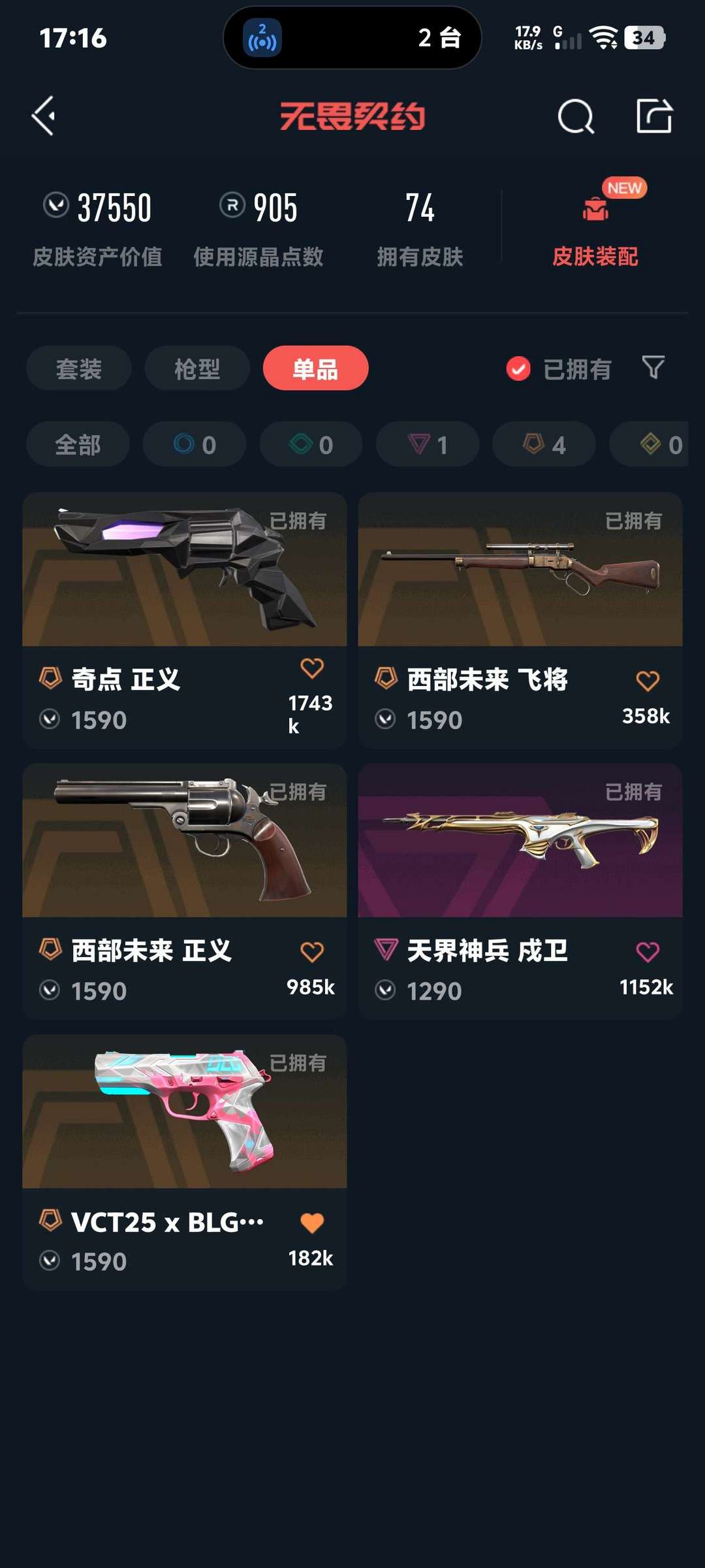 武器皮肤数量:74
