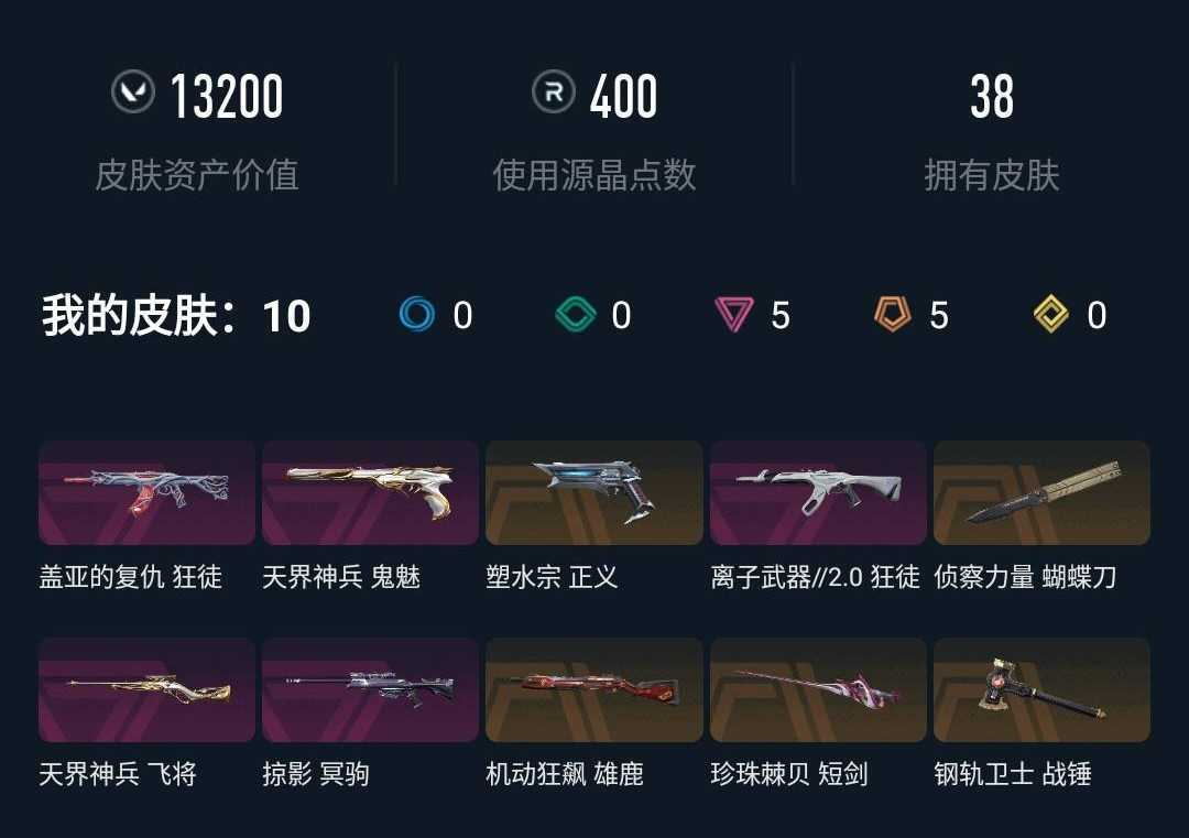 武器皮肤数量:38