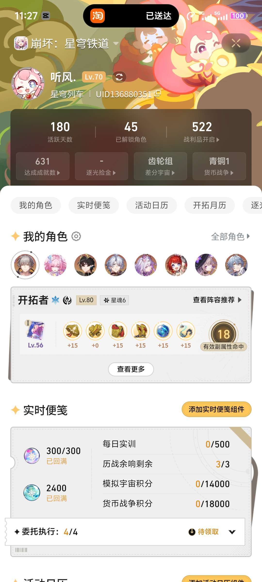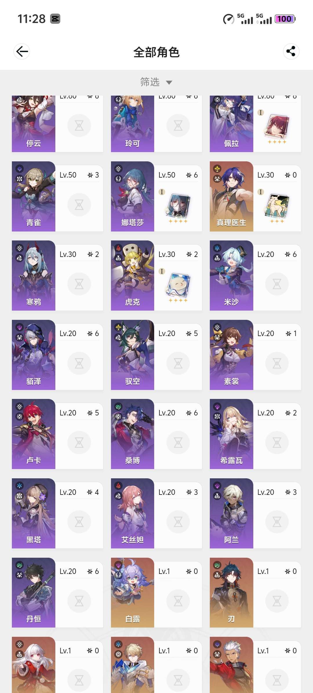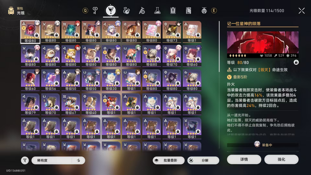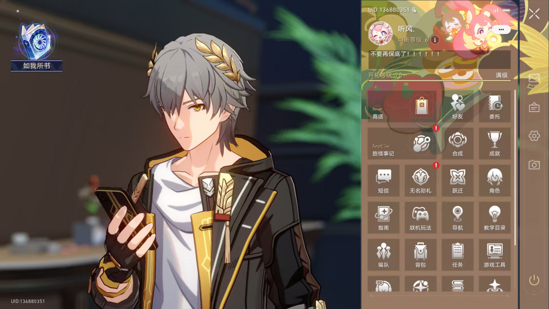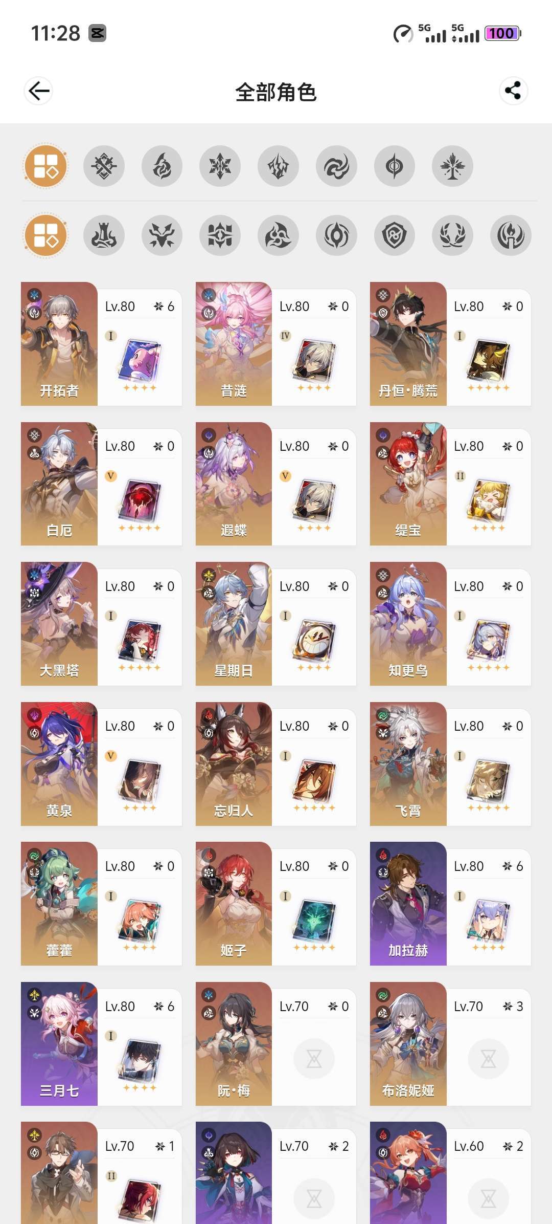 70级,男主,41黄,22个五星角色,9个五星光锥
