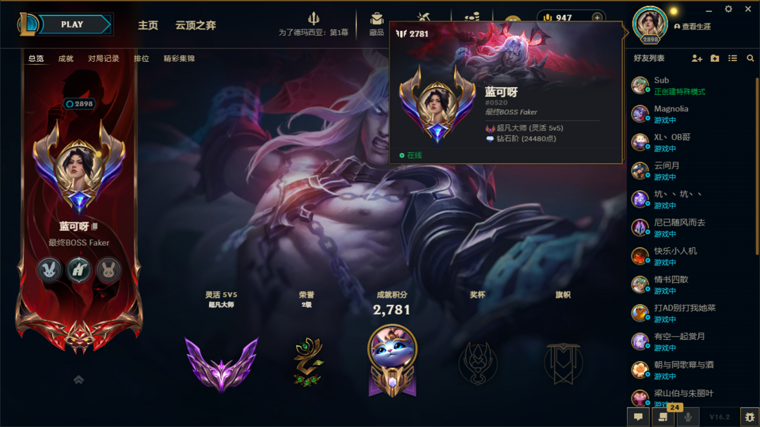 段位:2919级 流光翡翠IV