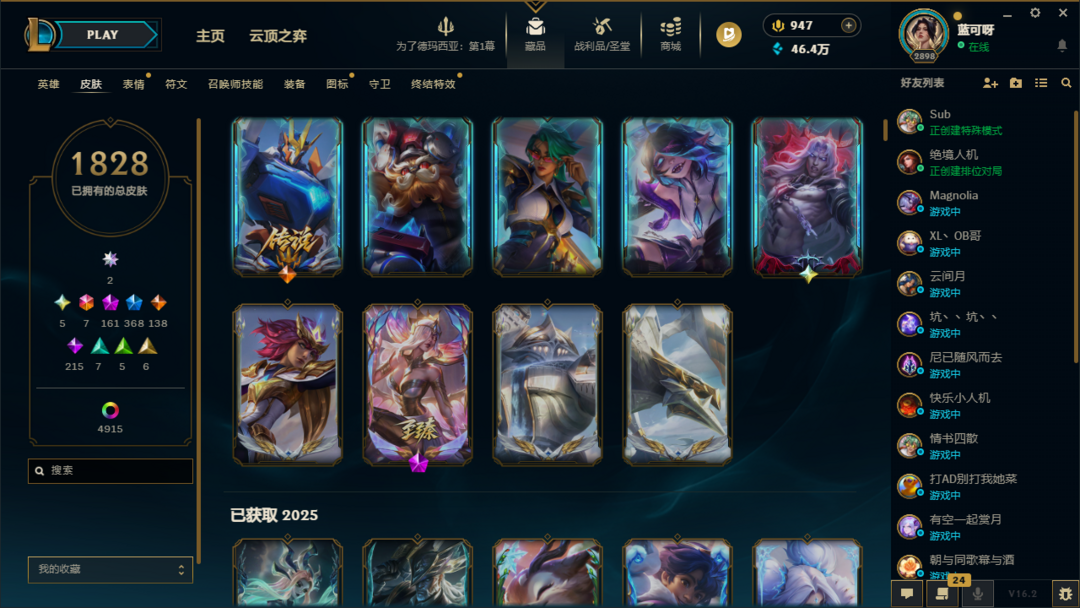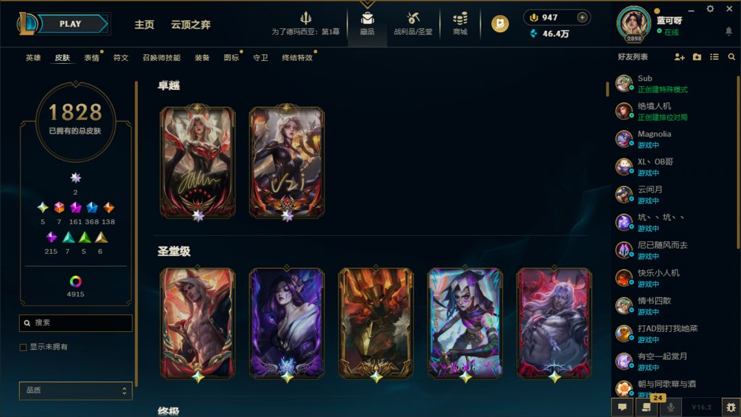 ⭐圣堂佛耶戈⭐1828皮肤+4917炫彩+197臻彩⭐沉溺暗影⭐全圣堂⭐小小格温+巴黎棋盘⭐全皮全炫