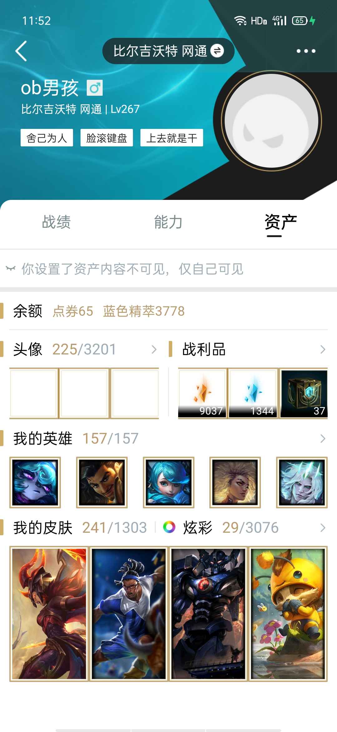 装备描述:全英雄,每个英雄几乎都有皮肤,2-6周年皮肤240+皮肤,可排位云顶铂金,账号还有火线出租,wegame被挤不会影响游戏正常