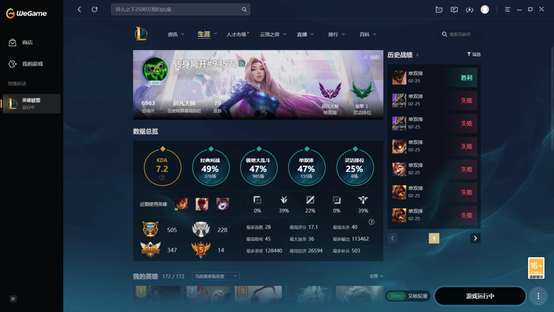 限制: 撤单率<50%才可租用此帐号英雄: 172