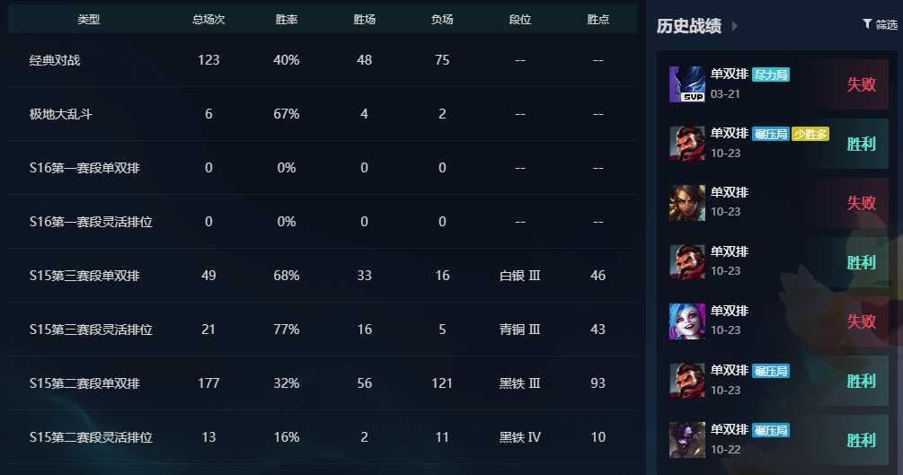 比尔吉沃特❤️全英雄可排位❤️单双青铜❤️S16赛季灵活青铜❤️海克斯乱斗负胜率❤️极品虐菜号
