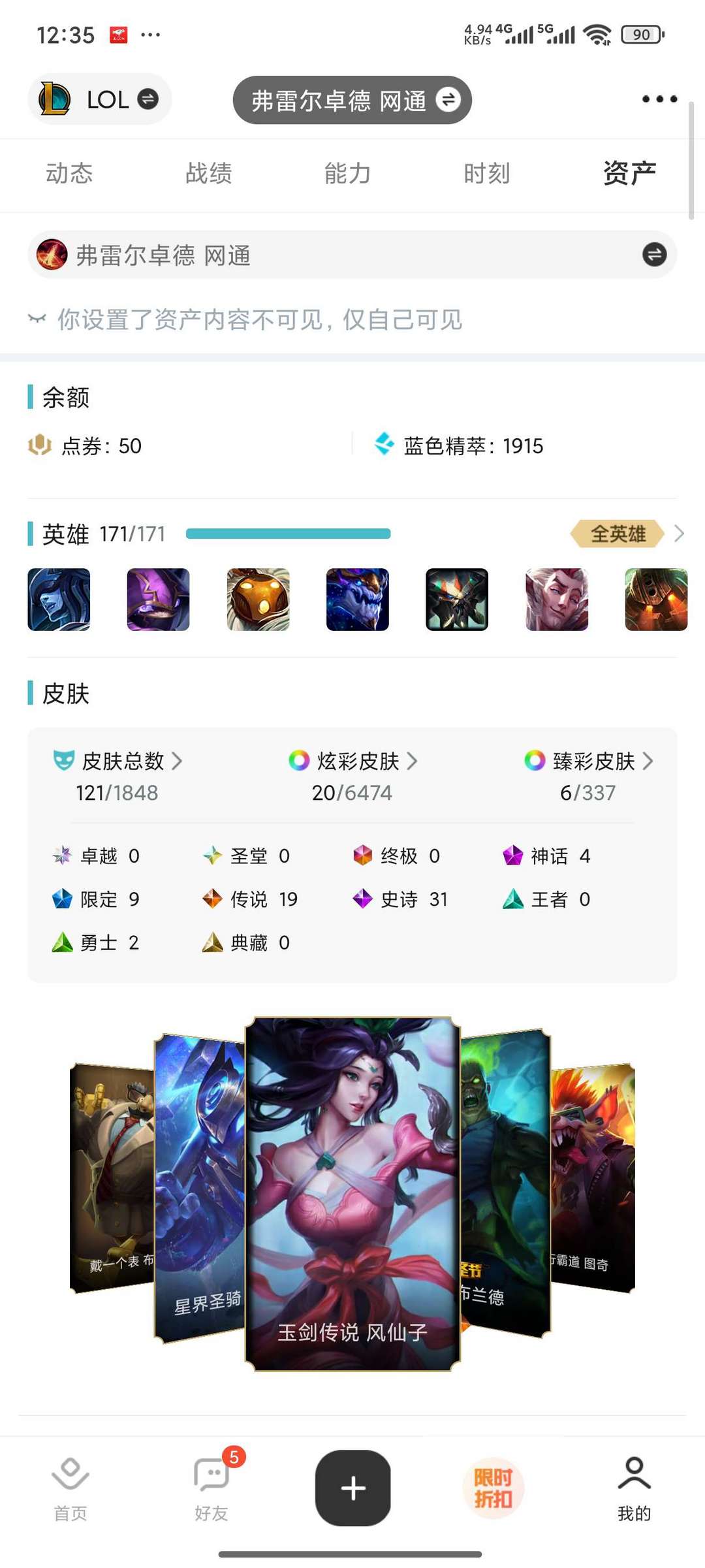 装备描述:大部分英雄都有皮肤自己看吧刀妹御剑传说舞剑仙全炫彩佩服包(我有时候可能会登录打粥,也就是说可能wegame会被顶一下,联盟不会被顶掉的,请放心,请不要介意,您再登录wegame就好了)