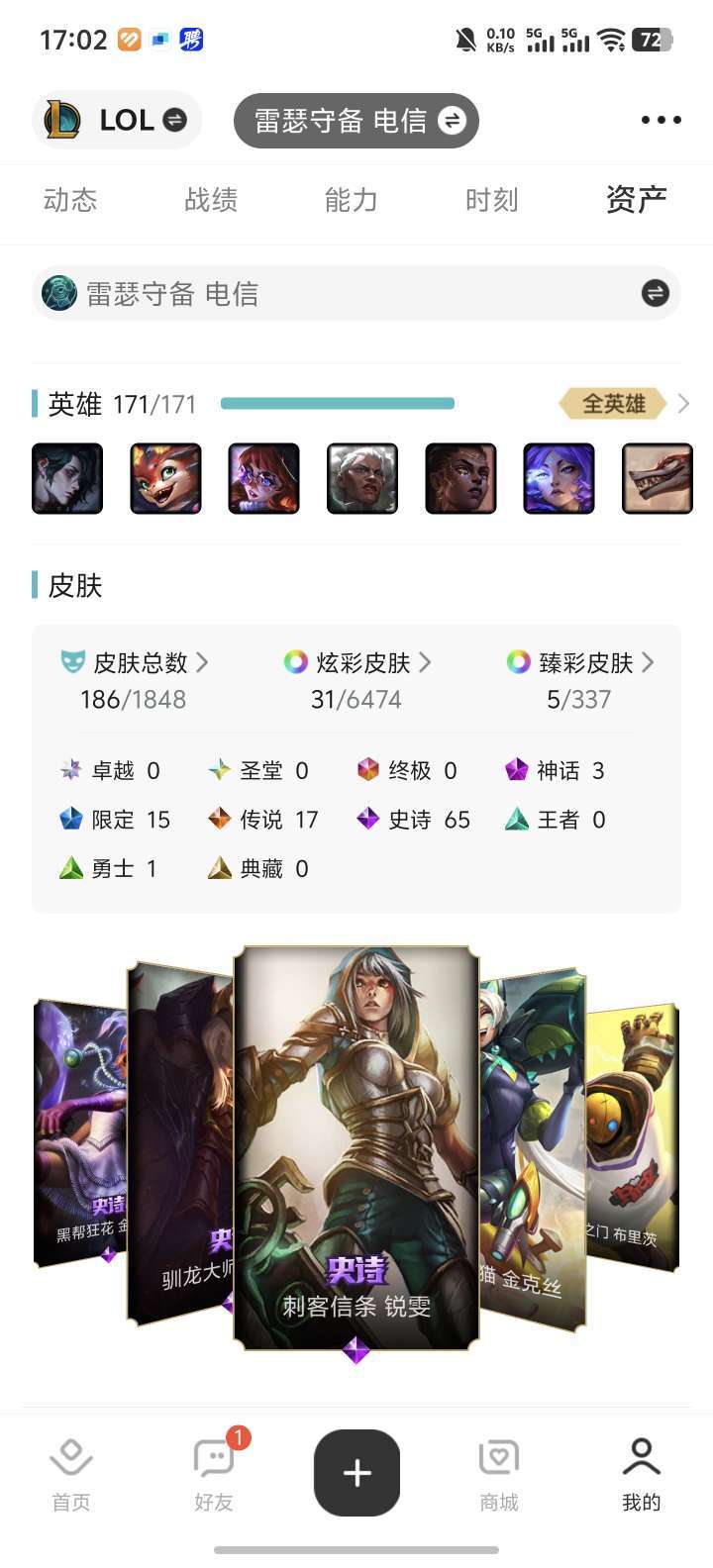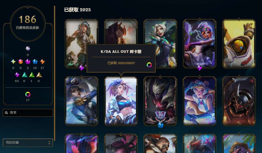 自用号皮肤不多*至高天 劫*kda卡莎阿卡丽*至高之拳*龙刀