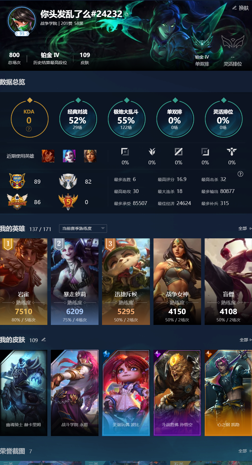 装备描述:137英雄109皮肤 可排位可交流。。。