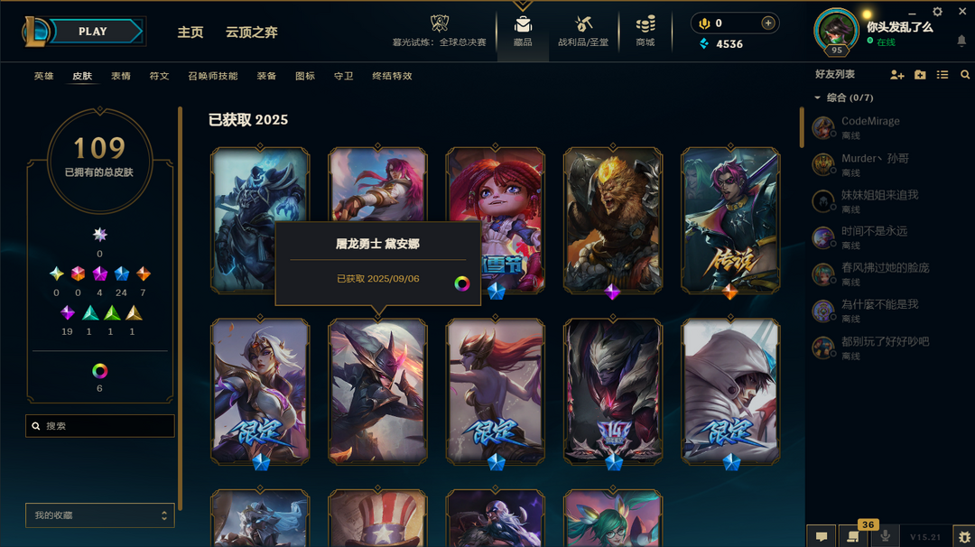【联盟二区 战争学院】137英雄109皮肤 可排位