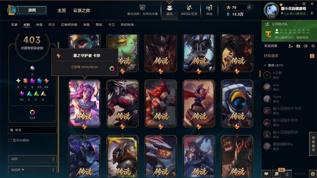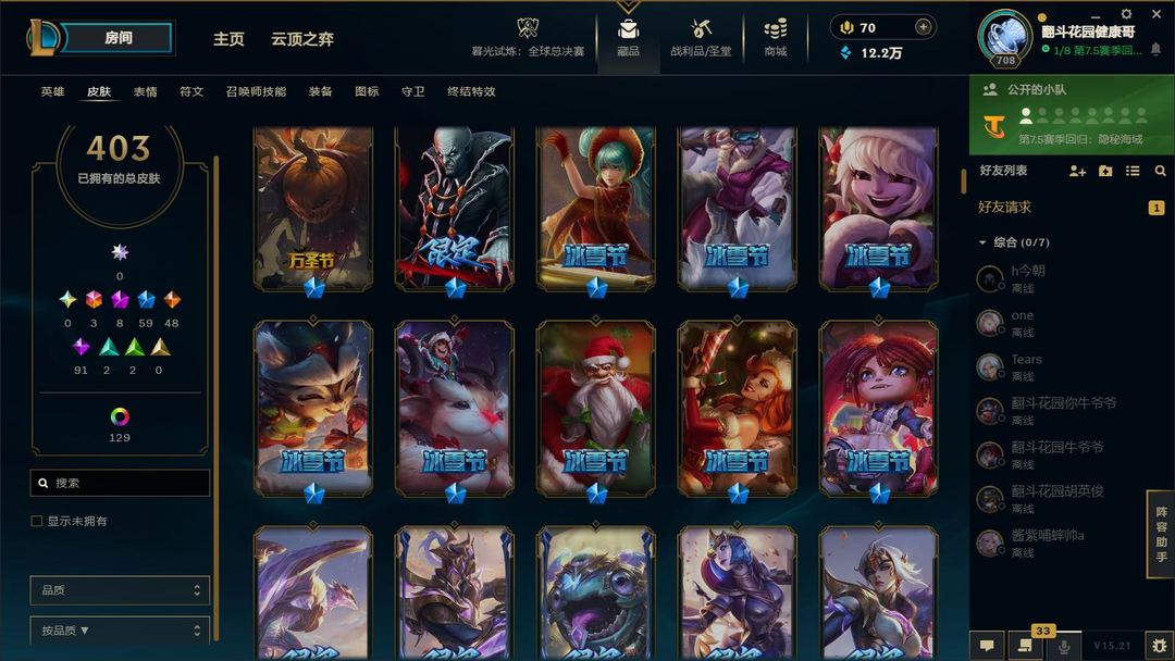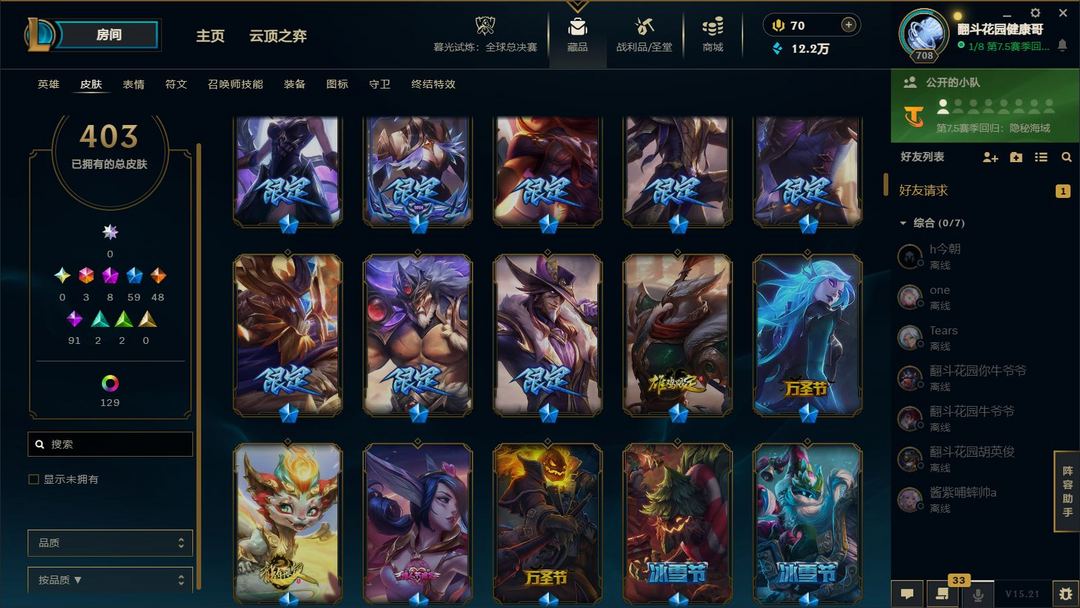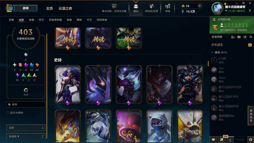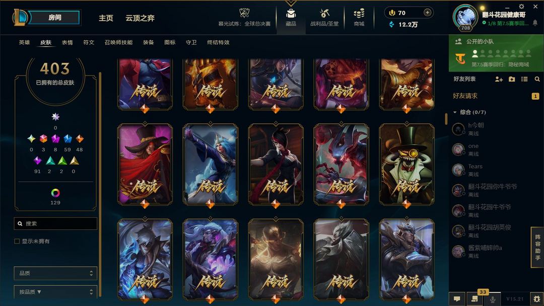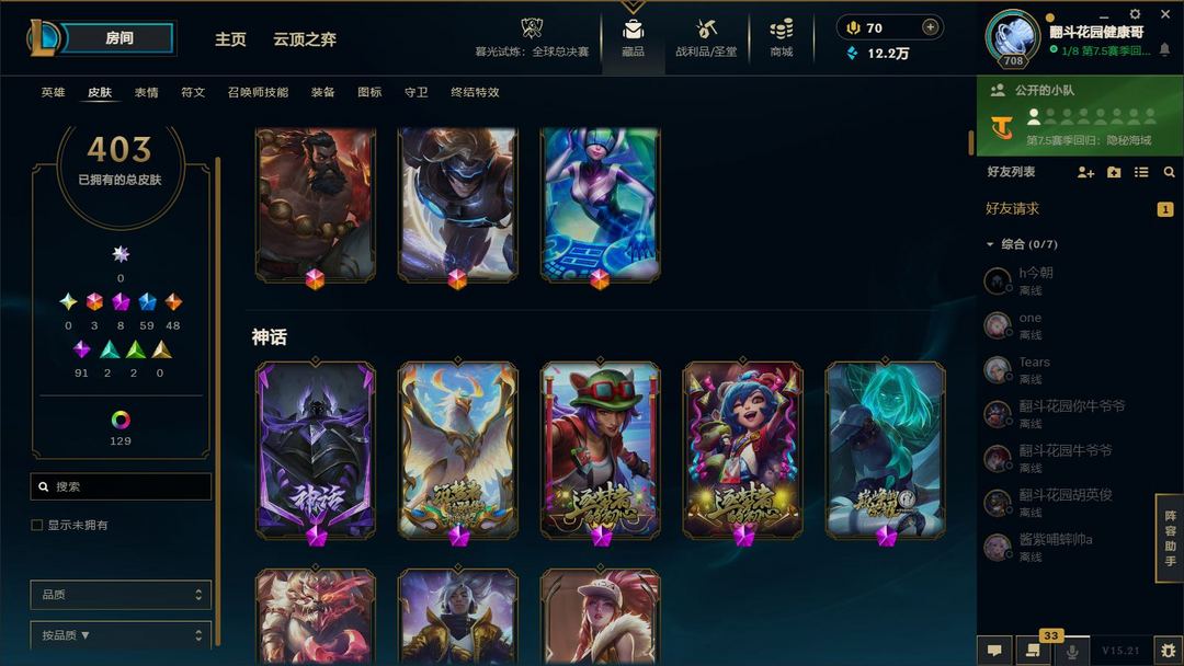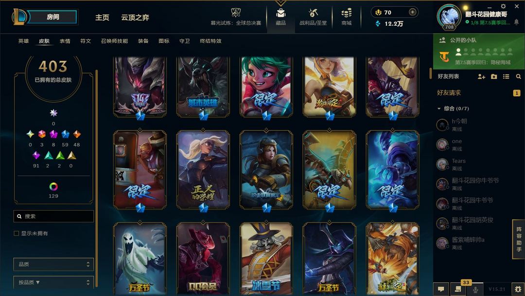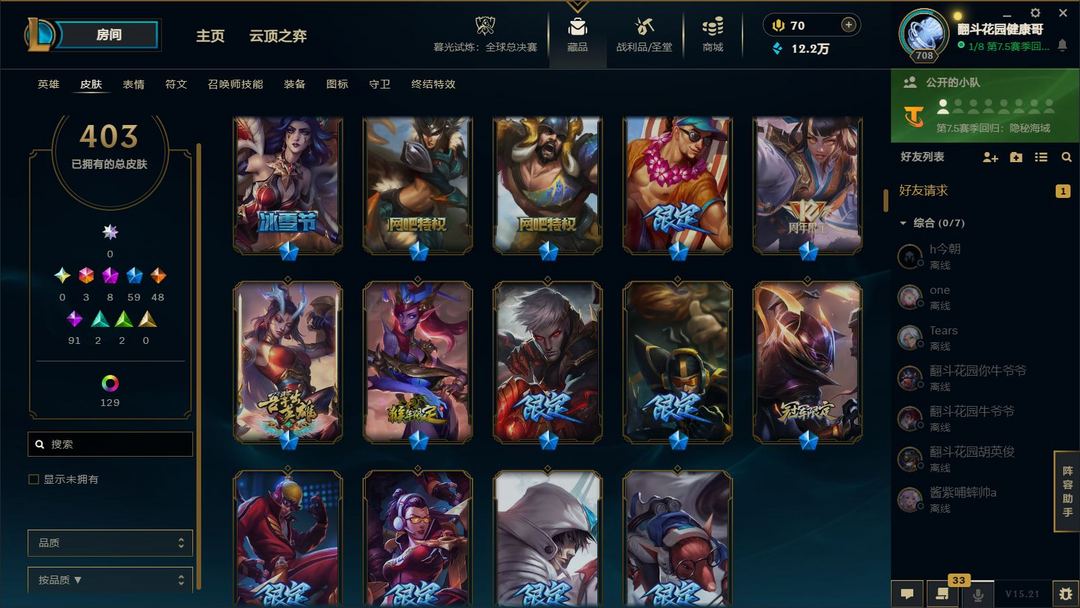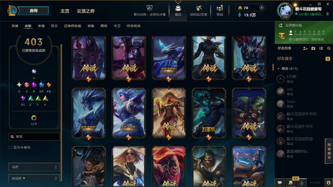 装备描述:满英雄,皮肤四百多,有臻彩,有冠军,可排位,可匹配娱乐,都是质量皮。