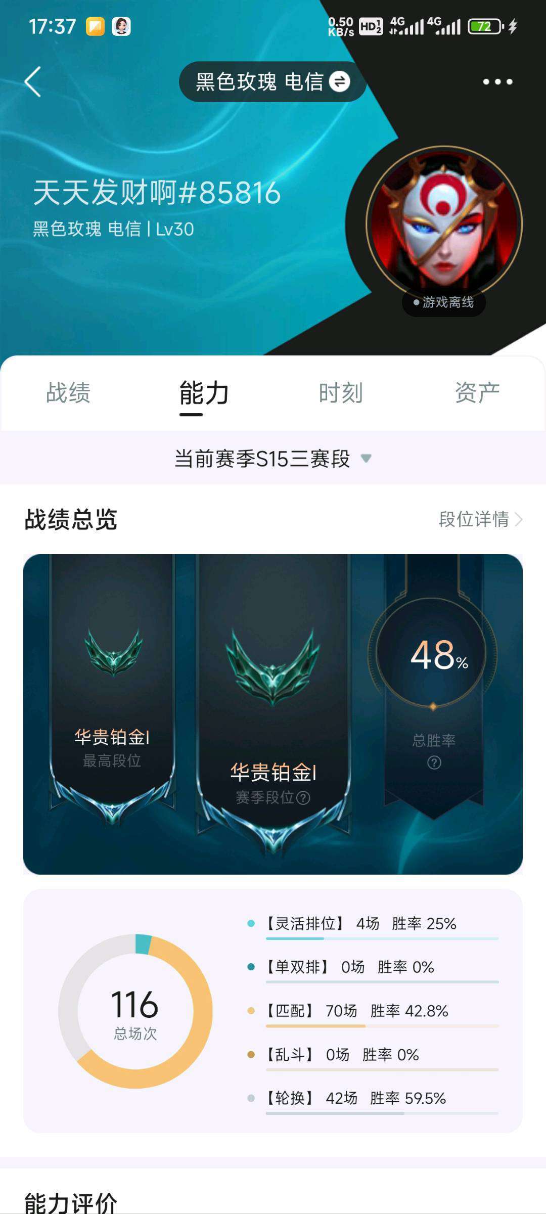 装备描述:黑色玫瑰,可任意模式,极品新号,匹配的都是正常人,游戏体检绝对好,非常适合开黑带妹,目前定位赛。