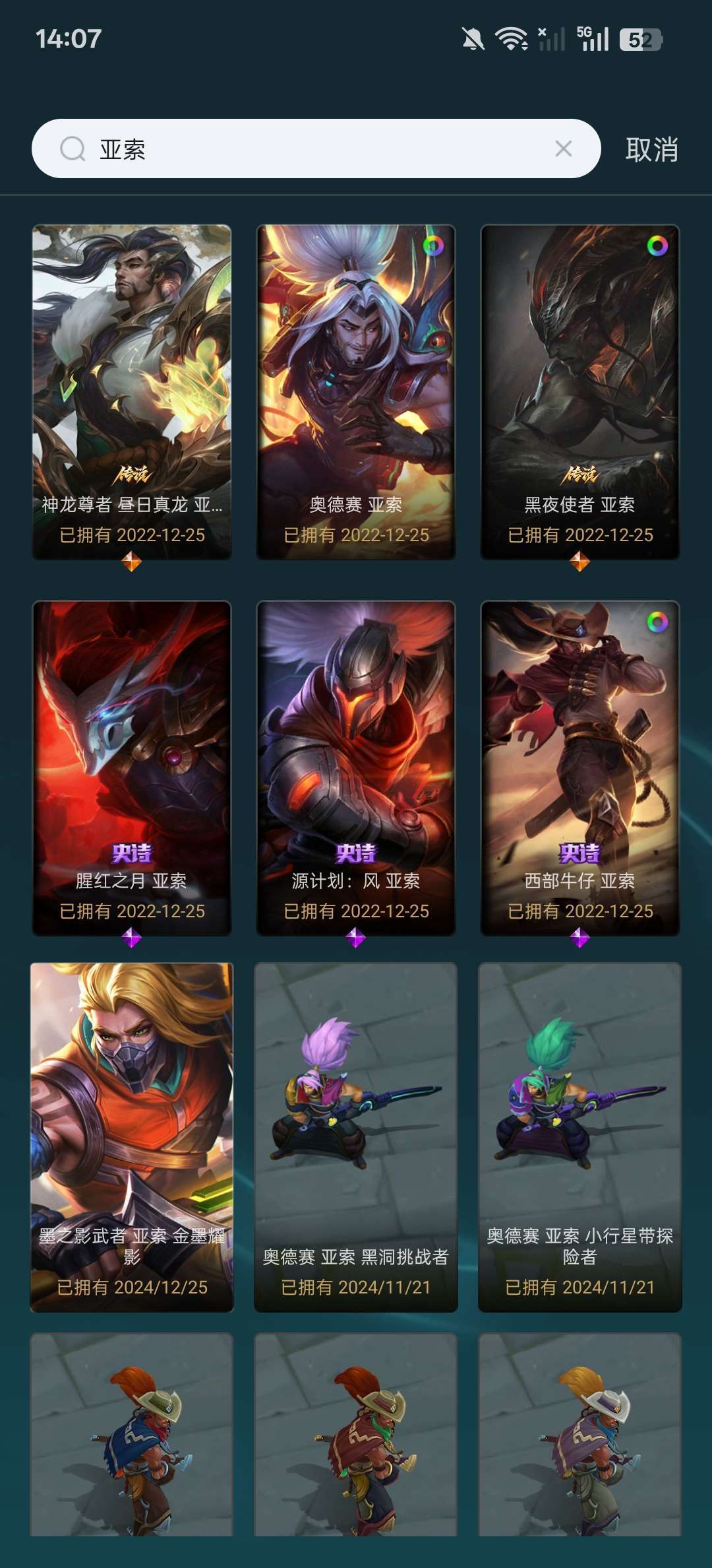 装备描述:有亚索黑夜使者,瞎子神龙,诺手神王,寒冰源计划,卢锡安西部魔影