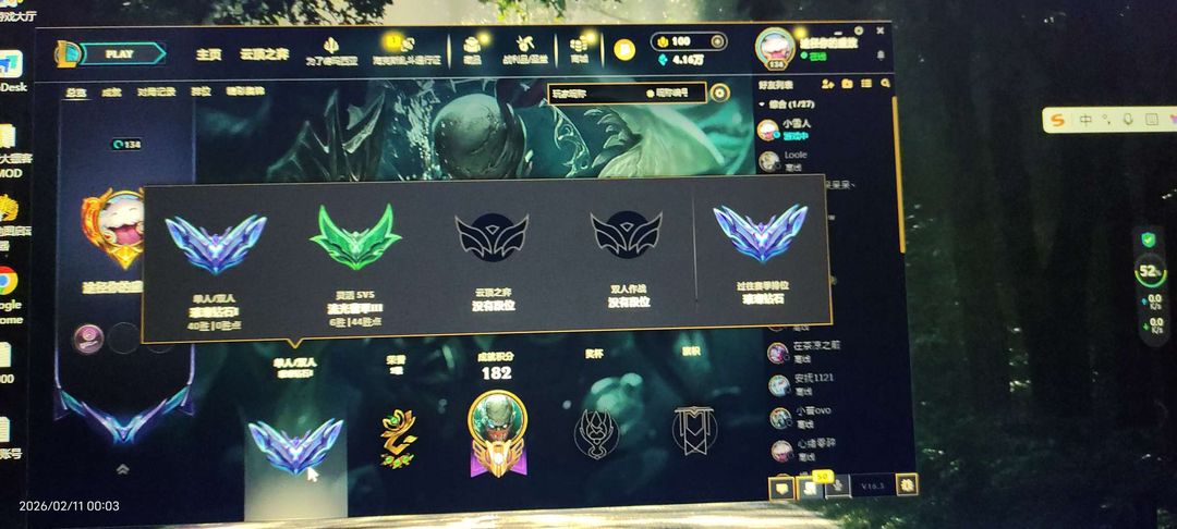艾欧尼亚单双钻石一,灵活翡翠三,可排位。