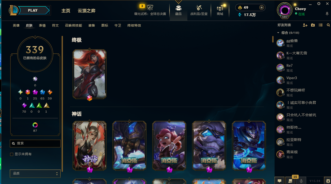 男刀玉剑传说加粉色炫彩鸡里奥海克斯至臻皮肤35个ig冠军套T1至臻塞拉斯1516年SKT冠军皮肤