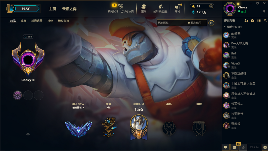 段位:587级 璀璨钻石IV级 璀璨钻石IV