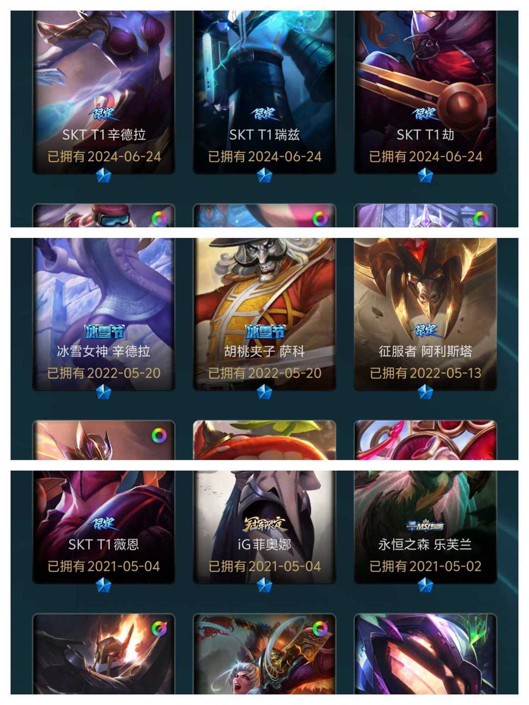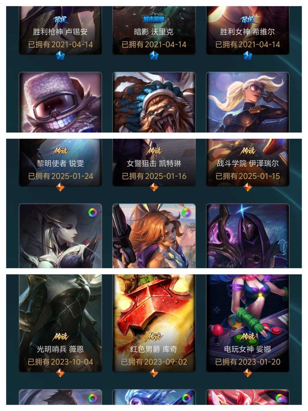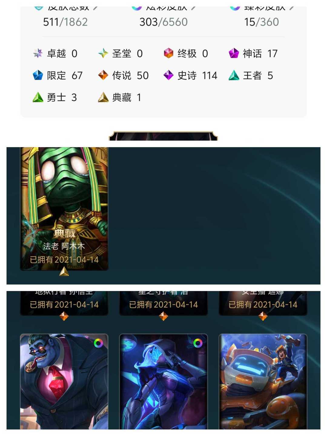 511皮✨303炫彩✨15臻彩✨17神话✨60限定✨50传说✨可排位